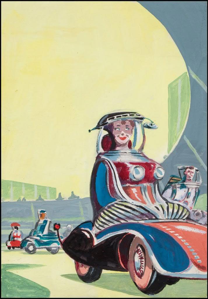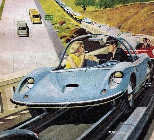 Автомобиль-костюм. Это вроде иллюстрация к фантастическому рассказу. Не помню автора, но читал в свое время его.