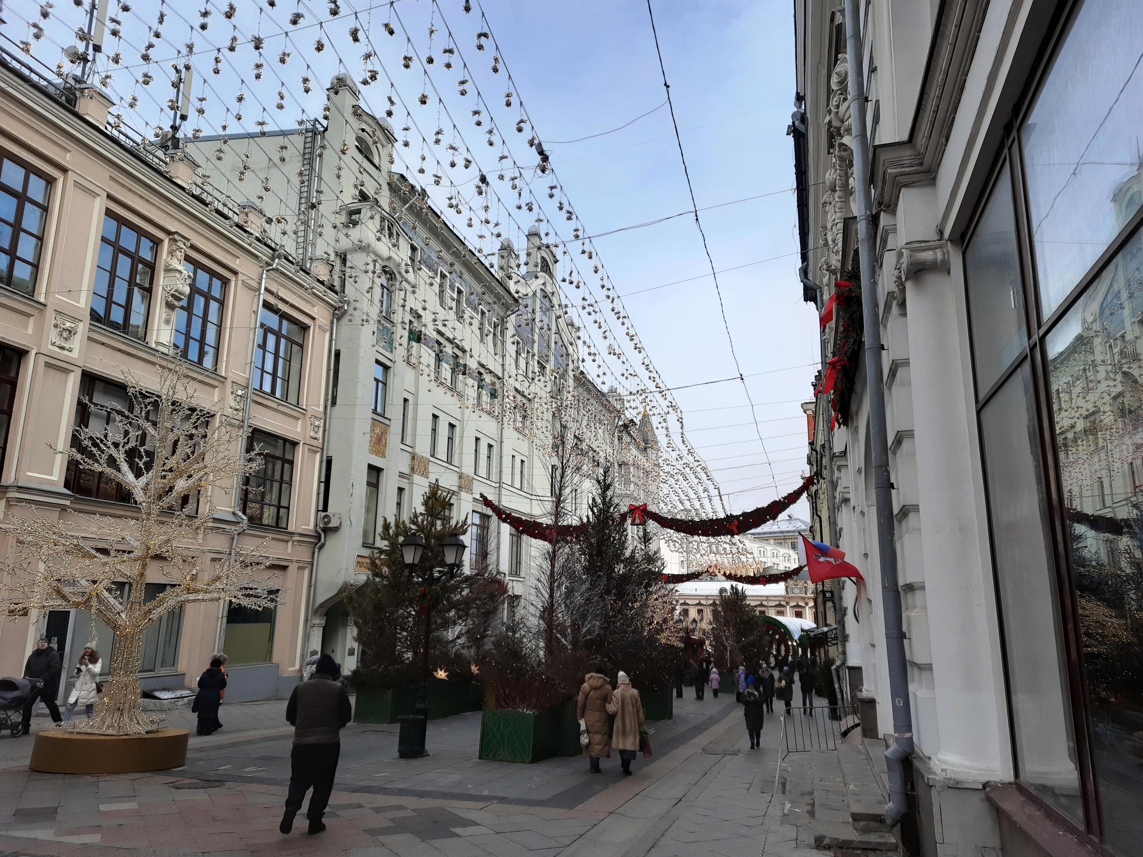 Автор: Дмитрий КазарцевВ начале января прошелся я в центре по московским улицам и сделал несколько фото. Было не очень холодно. Всюду виднелись украшения и гирлянды. Царила атмосфера праздника, доброты и уюта. Люди были веселые и радостные.