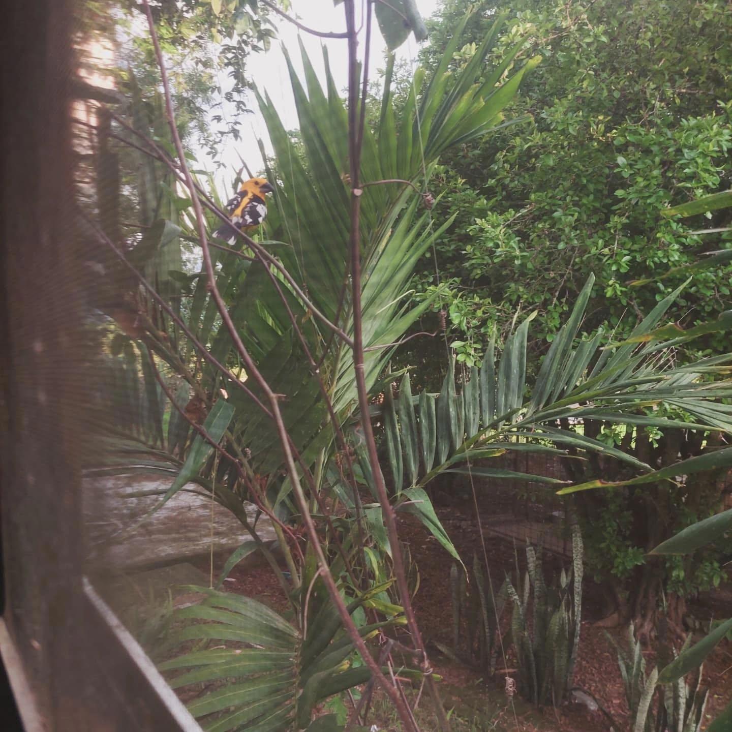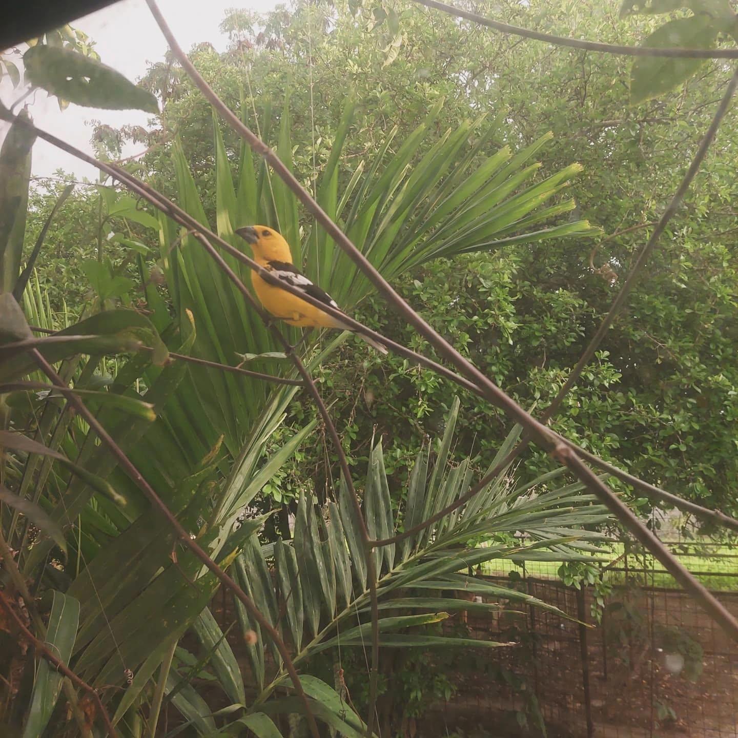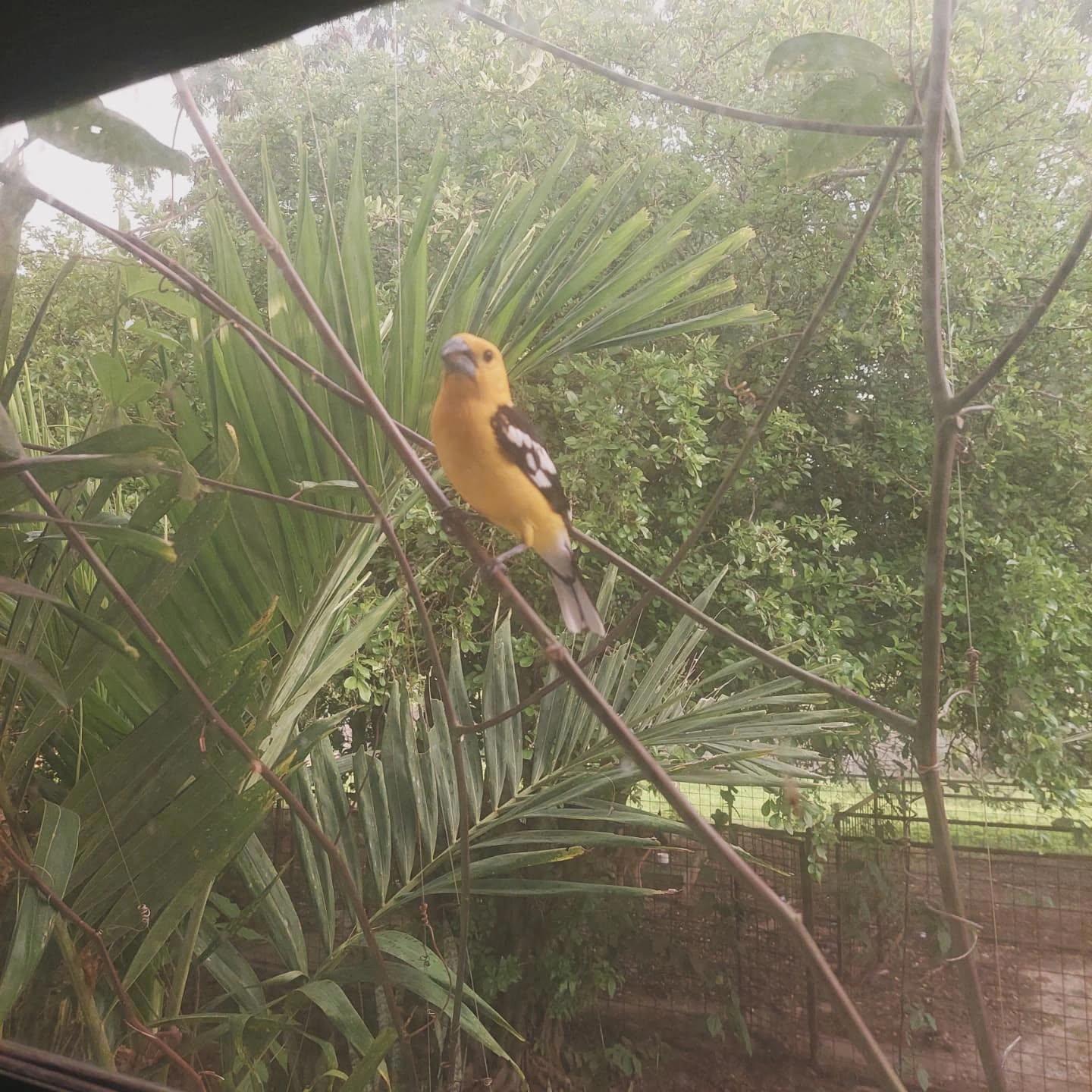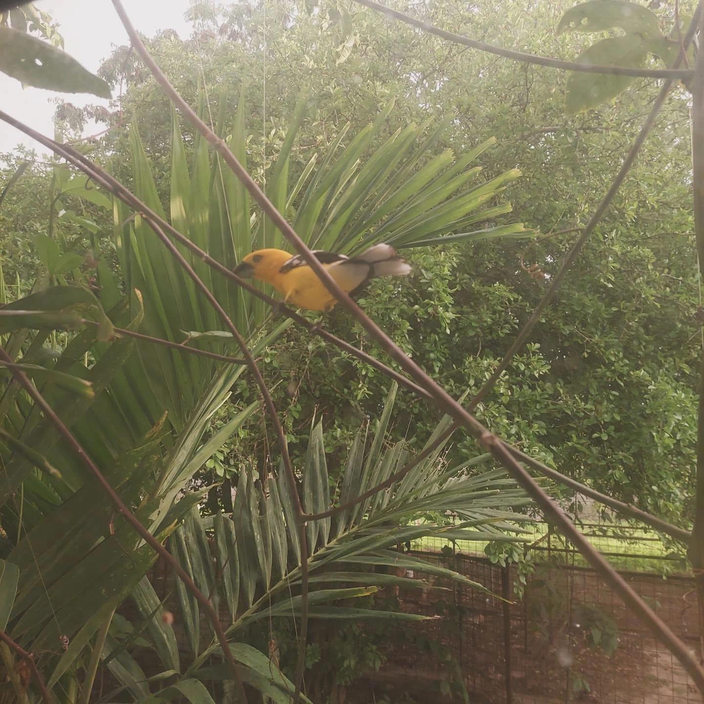 Предположительно желтый толстоклюв. Постоянно долбится в окна.