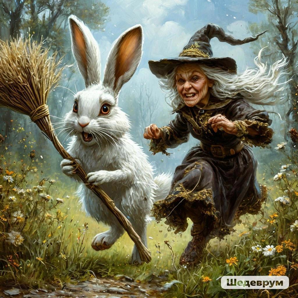 На свист Бабьяги из-под еловой лапы выпрыгнул белый кролик, только… был он выше и несколько мощнее того пушистика, за которым следовало бежать.