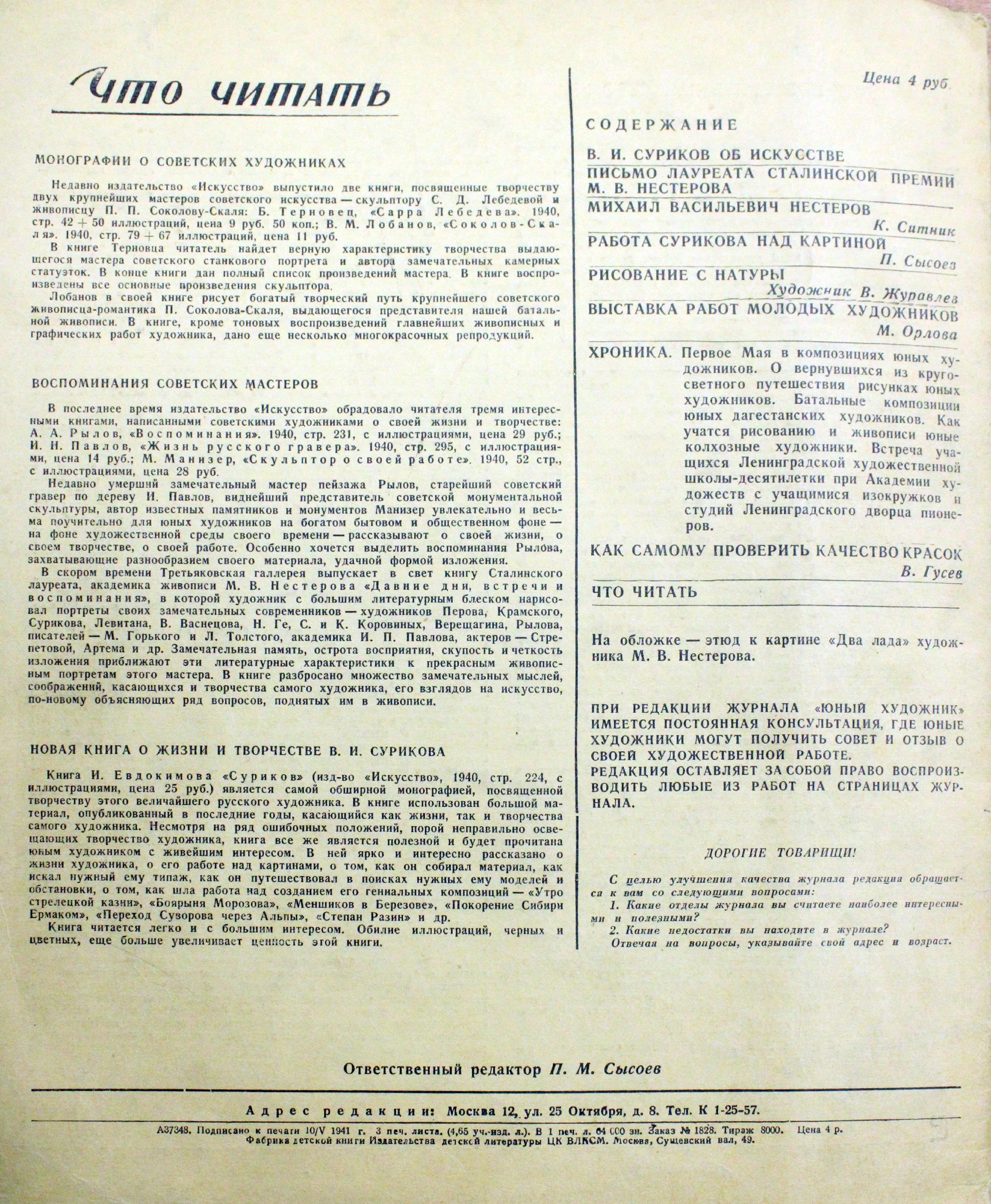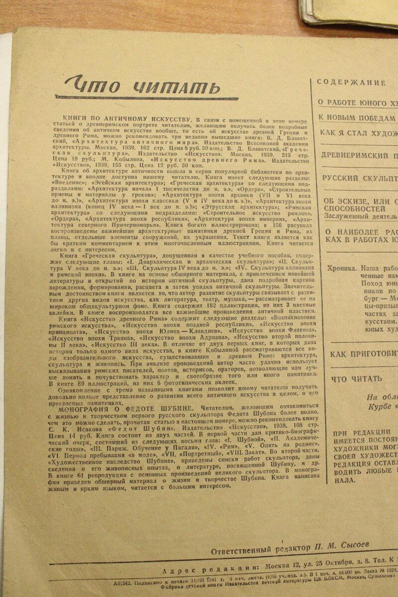 Судите сами... Революция случилась всего за 19 лет до этого. До революции была мировая война. После революции — Гражданская война. Была разруха. Была неграмотность, которую надо было ликвидировать. Была индустриализация, коллективизация... И все еще люди, закончившие 7 классов школы, для многих казались недосягаемой вершиной. И вот в этих условиях создается журнал "Юный художник". Журнал, который не только становится наставником юных художников в решении практических задач, но еще и дает знания по истории мирового изобразительного искусства от древнейших эпох до современности.