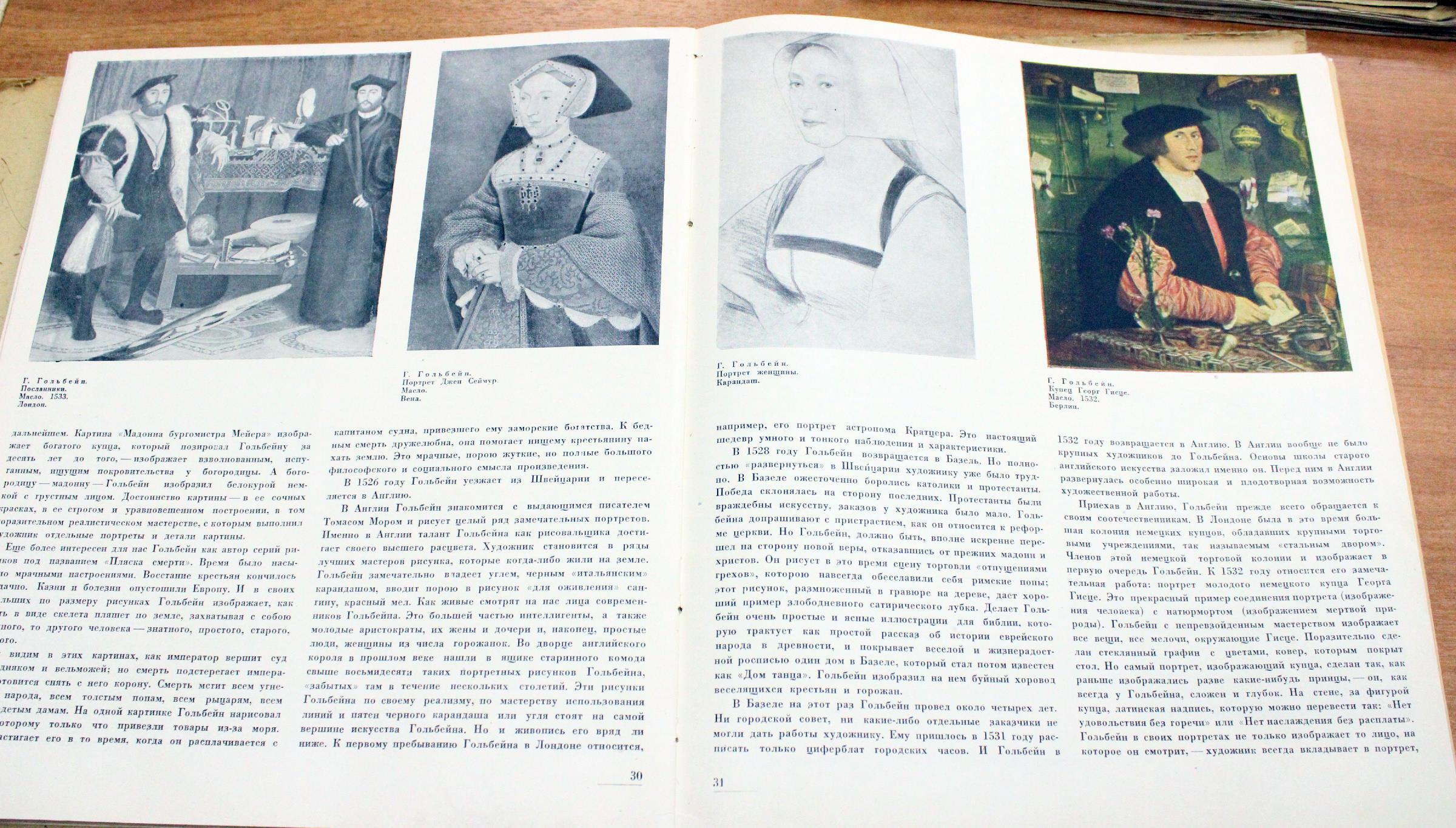 Точно так же давались подробные обзоры работ старых мастеров и различных направлений и изобразительном искусстве.
