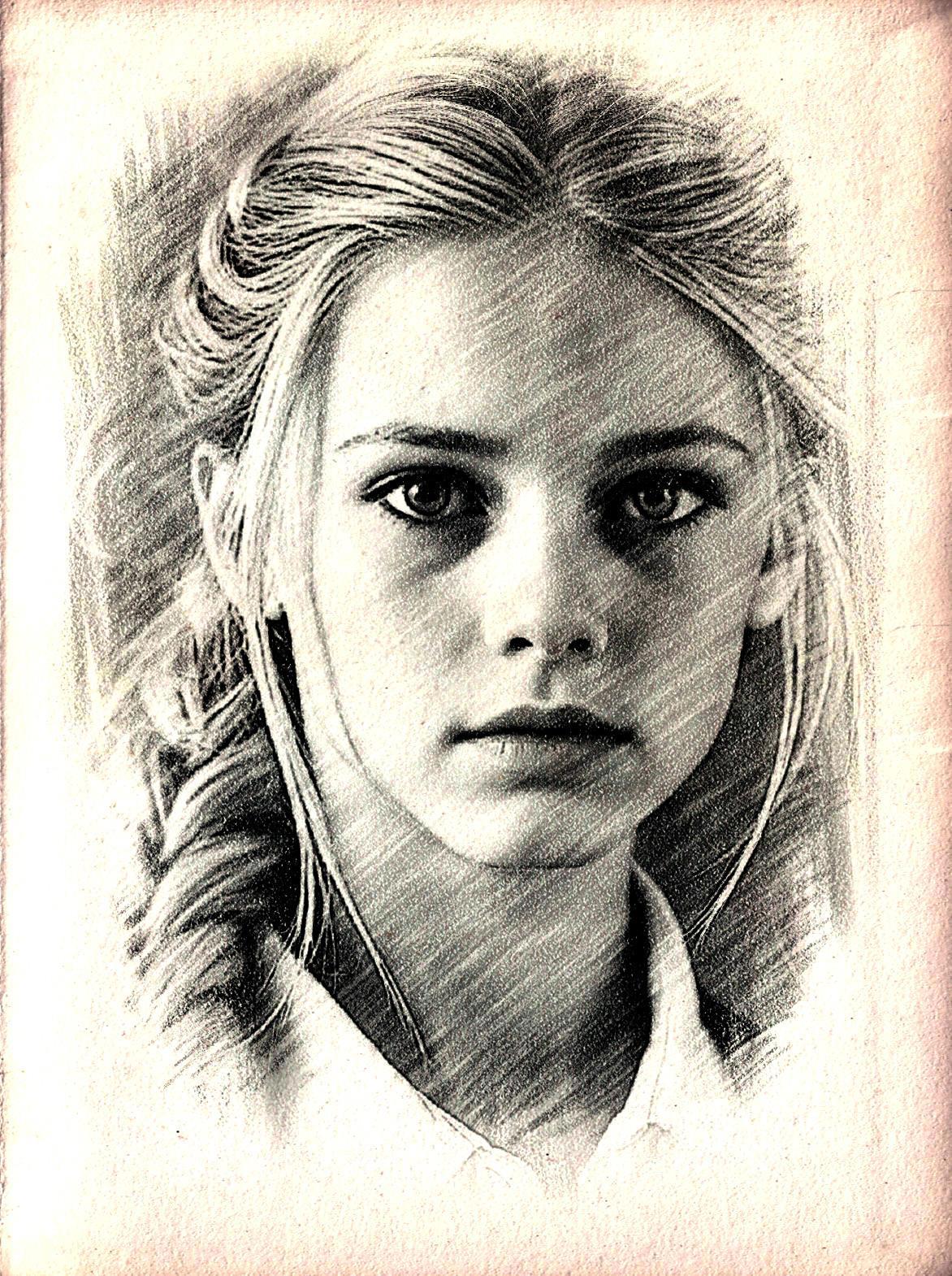 Единственная девочка из этой жуткой банды радиоактивных мутантов, Лина Литвинова. ИИ выдал одно и тоже лицо с двух ракурсов. Главный герой влюблён в неё и про себя называет не иначе, как Фея Озера.
