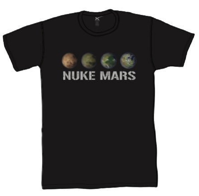 Недавно Илон Маск написал в своем Твиттере странный пост, в котором он призвал сбросить ядерную бомбу на Марс - "Nuke Mars!". В честь этой сумасшедшей инициативы он пообещал запустить продажу линейку футболок с соответствующей надписью.