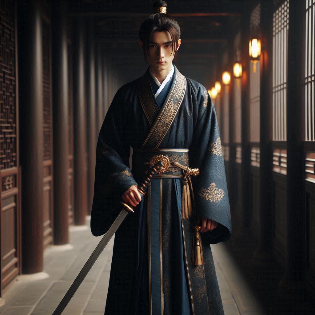 Но больше Люй Инчжэнь поразил внешний вид асура. Цюфэн носил мантию из тёмно-синего шёлка, расшитую золотом по нижнему краю и широким рукавам. А его волосы украшал золотой гуань в виде драконьей морды, заколотый длинной поперечной шпилькой. Такой наряд достоин императора из мира смертных или высшего небожителя, но никак не заурядного молодого мужчины с окраин демонического мира.