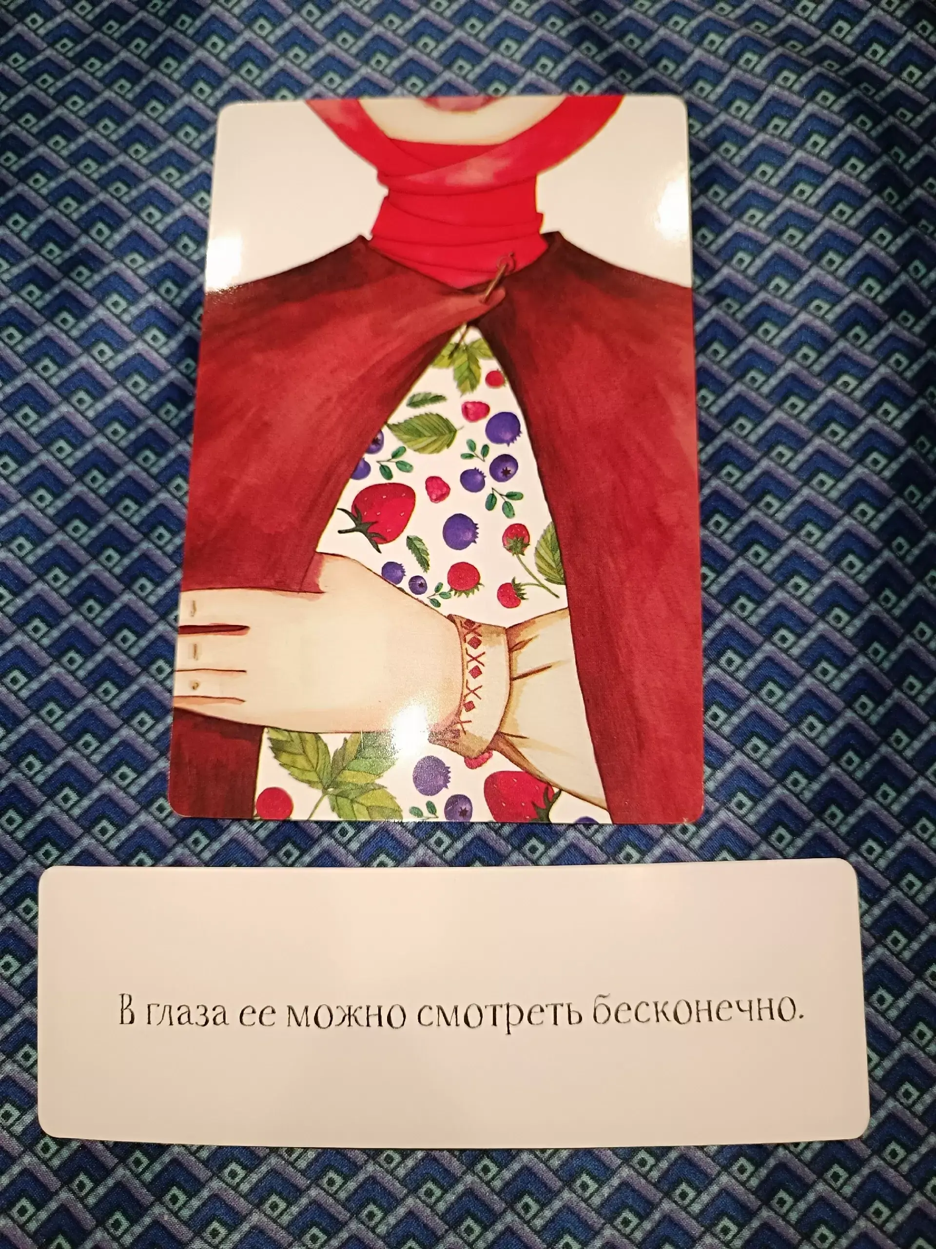 — Какая карта вам выпала. Яркая, но закрытая. Возможно, это как раз говорит о вашем образе, призвании. Вы умеете блистать для зрителя. Но внутри остаётесь закрытым, цельным. Можете перевоплотиться в персонаж, и при этом никто не узнает, какой вы на самом деле. Для меня это правильно, потому что я сама такая, — Ари смотрит на Александра. Тот внимательно разглядывает карту и подсказку, а затем поднимает глаза, и их взгляды встречаются.