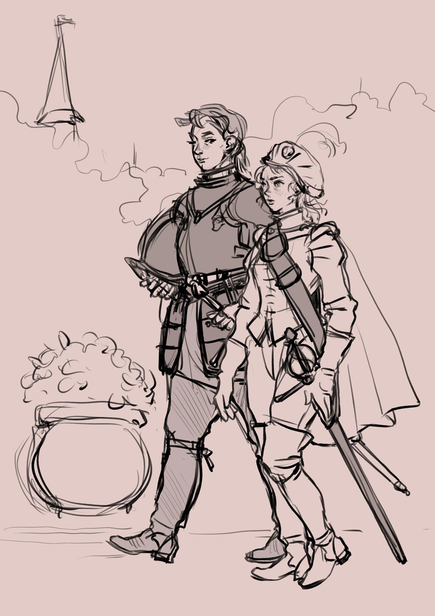 Автор: Руслан БирюшевСегодня мы с Александром Прибыловым закончили первый эскиз последнего скетча в наборе иллюстраций для романа "Наёмная рота "Светлые головы". Если первые два скетча были посвящены основным персонажам истории, то последний отдан на откуп второстепенным. А именно - телохранителям эльвартской герцогини, коллегам леди Марии и союзникам роты в закрутившейся истории. Перед вами - леди Яна и леди Эмилия. Хотя в личной гвардии нет званий и должностей, гвардейцы достаточно хорошо знают друг друга, чтобы неформально распределять роли. Леди Яна всегда была харизматичным лидером своих названых сестёр, а общительная и дружелюбная леди Эмилия - своего рода дипломатом и спецалистом по связям с общественностью. Впрочем, не стоит обманываться её маленьким ростом, хрупкостью и вечной улыбкой - этому маленькую девушку, похожую на подростка, не зря приставили тренером по рукопашному бою к наёмникам.