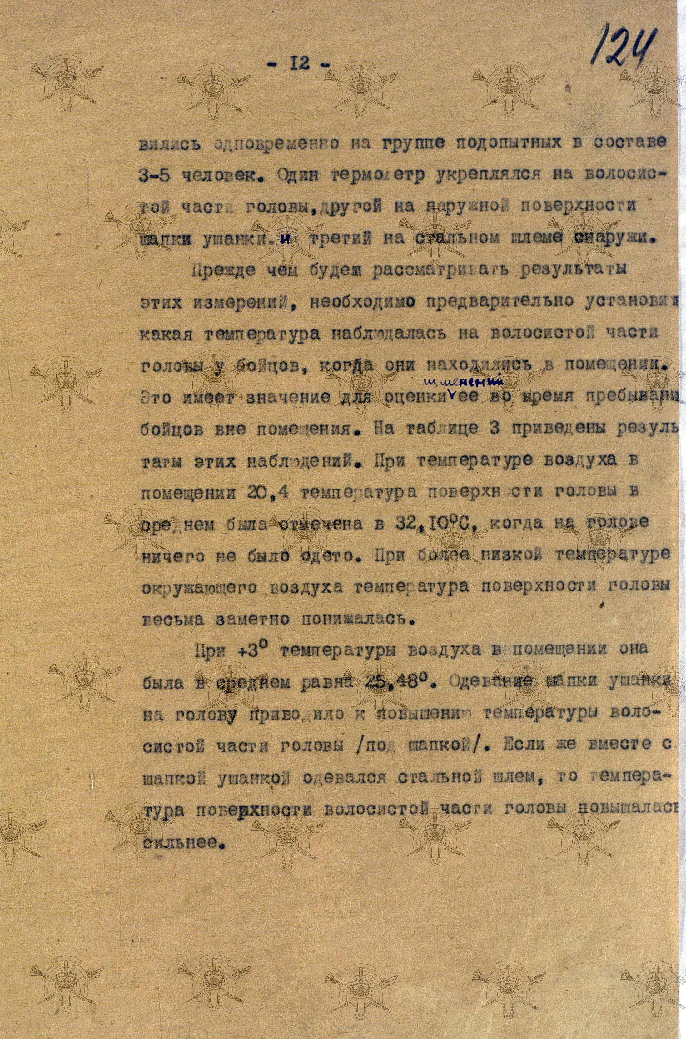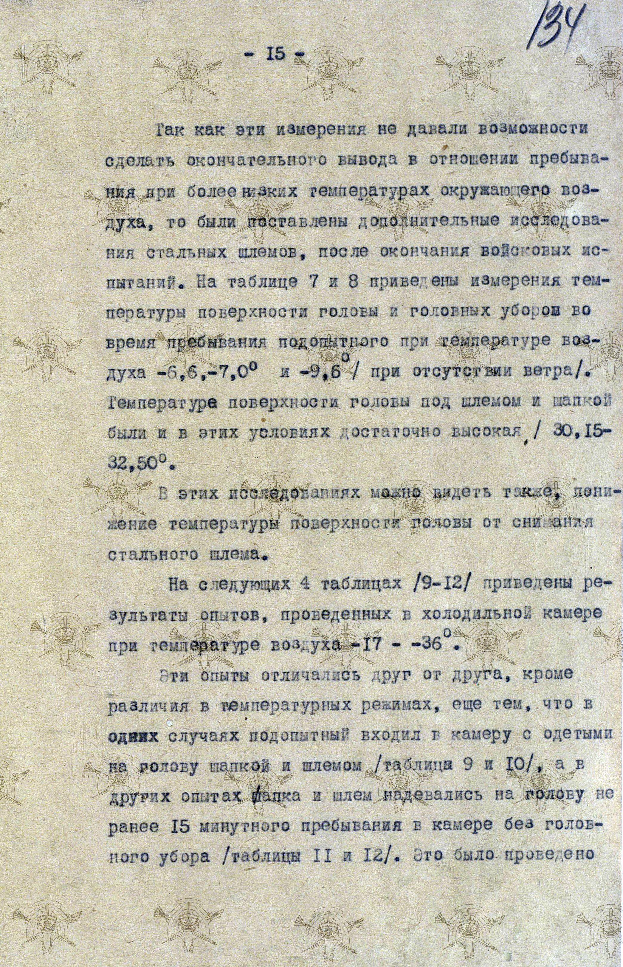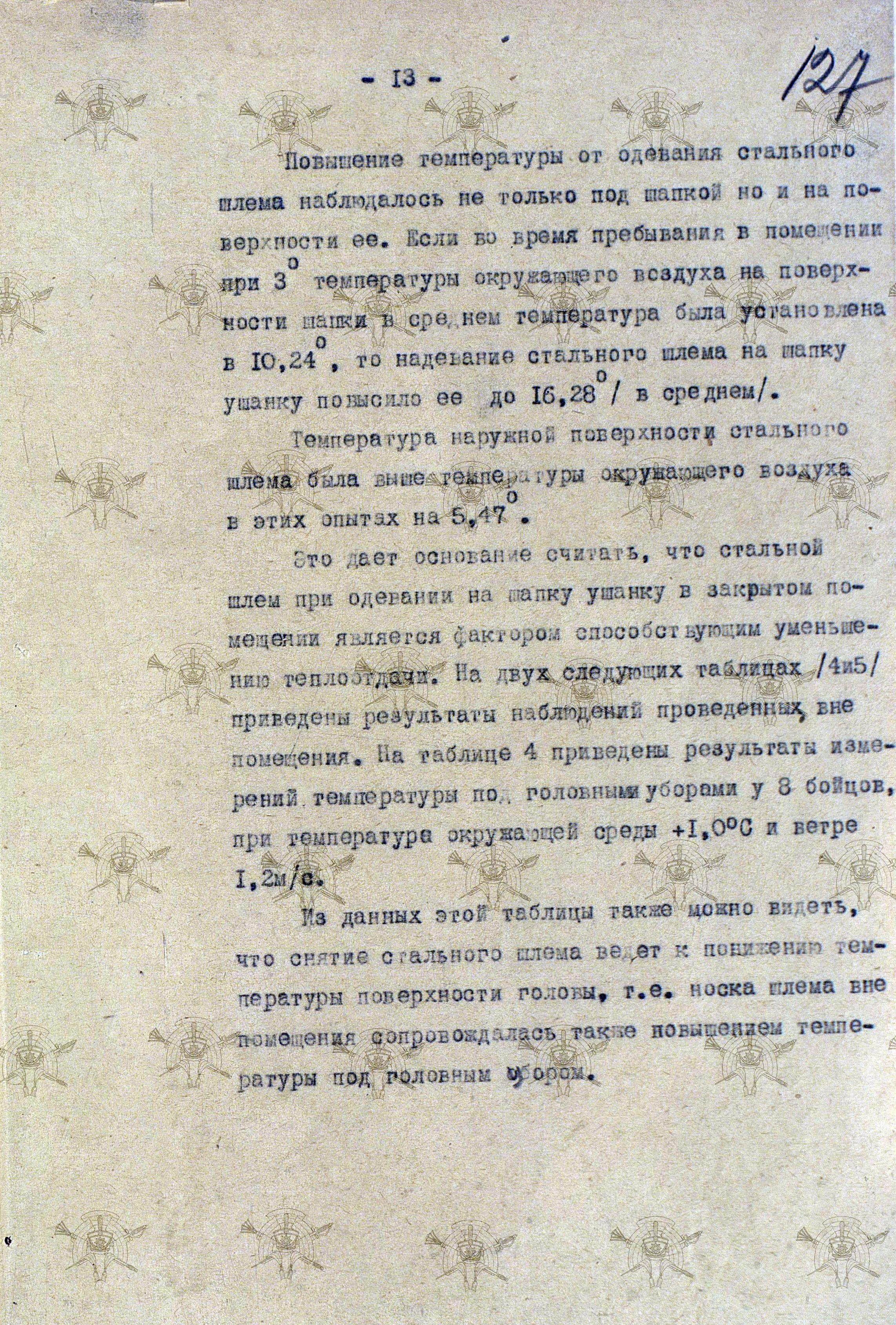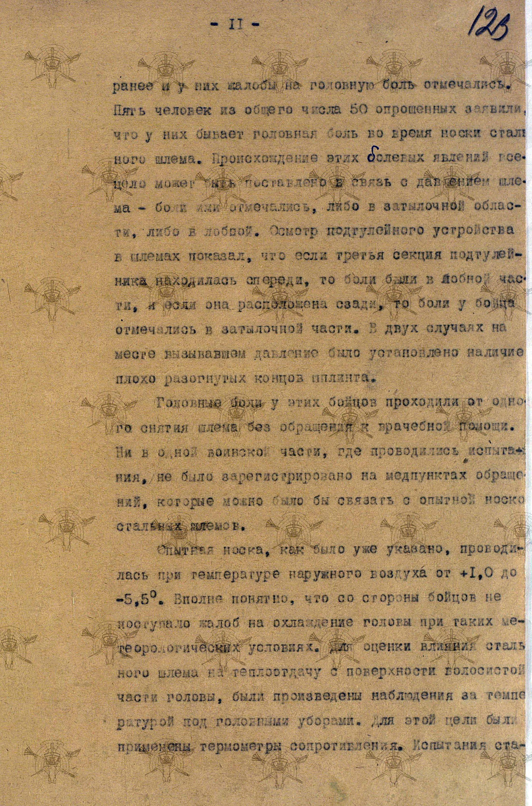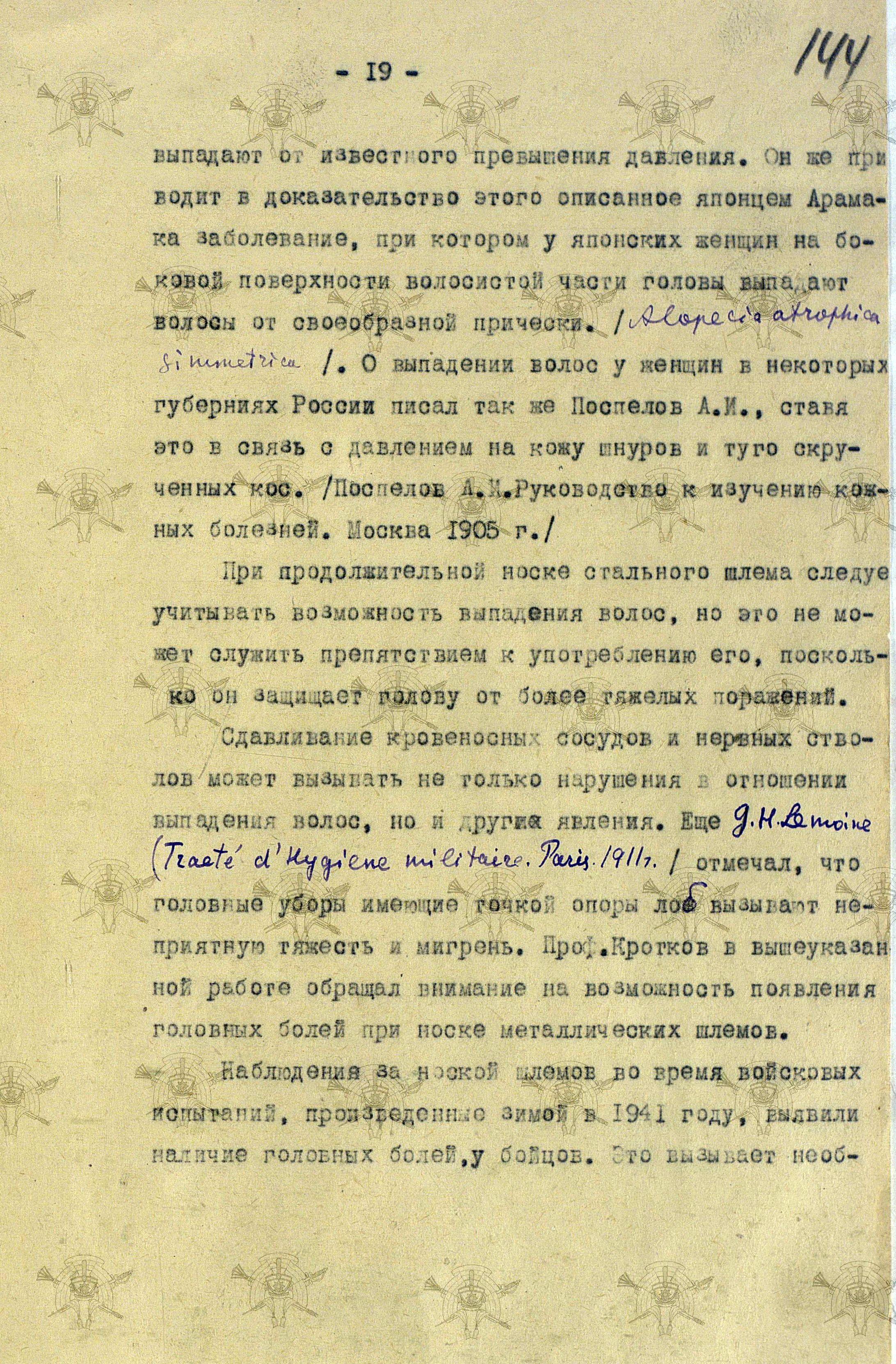 "Санитарно-гигиеническая оценка стальных шлемов с новым подтулейным устройством." 1941 г.