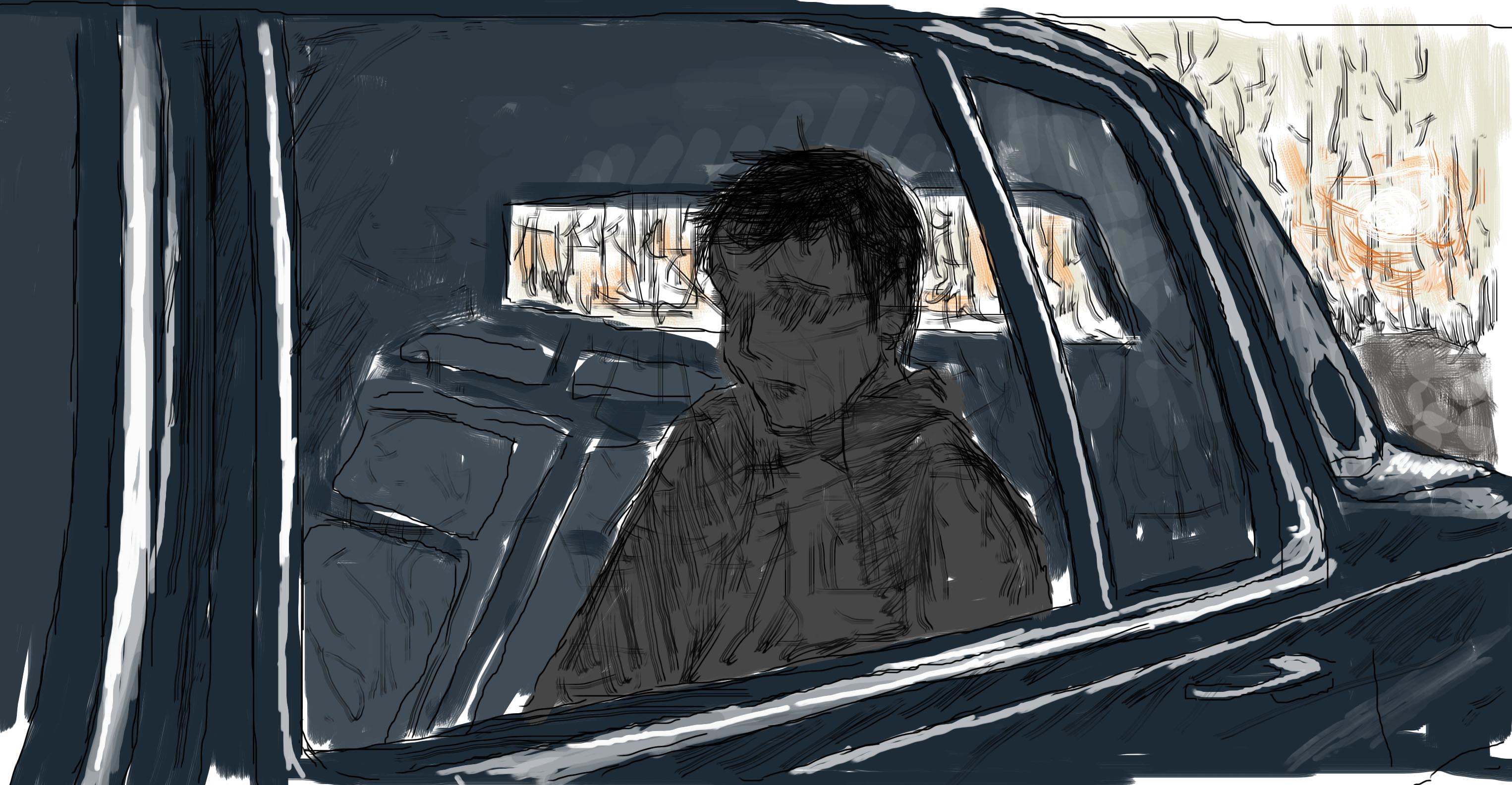 Капот машины загорелся, опаляя меня теплом пламени и освещая путь. Вот он, тот человек. Я снова увидел его. Он снова уверенно стоит и ждет меня. Огонь с капота начал распространяться. Наконец, машина замедлила шаг. Когда мы поравнялись с человеком на дороге, я выпрыгнул из этой черной машины.