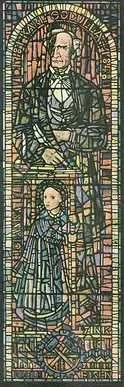 В этом замке они жили. Замок сильно пострадал во время второй мировой. И только сейчас его взялись восстанавливать. И первое что восстановили - это фамильный склеп, где похоронены владельцы. А Кароля увековечил не только витраж, но и вот такая скамейка.