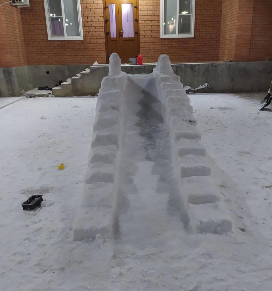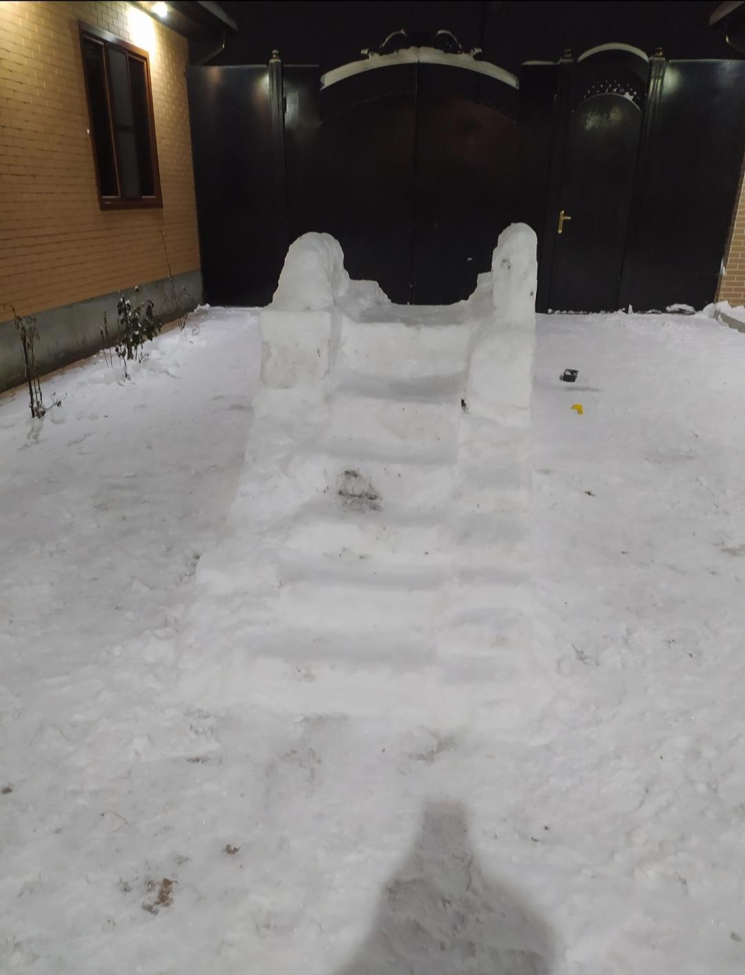 Автор: Оздамиров СултанРешил сгрести в кучу снег, но понесла меня нелёгкая) затащила в детство. Первым из детей удостоен чести скатиться с этой горки Я))))