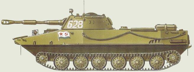 Эта весьма не плохая четырнадцати тонная машинка была создана в 1950 году, имела хорошую пушку калибра 76 мм ( Паттоны и Чаффи эта пушка щелкала как орехи), скорость "Плавуна*" была 44 км/ч по суше и 10 по воде.