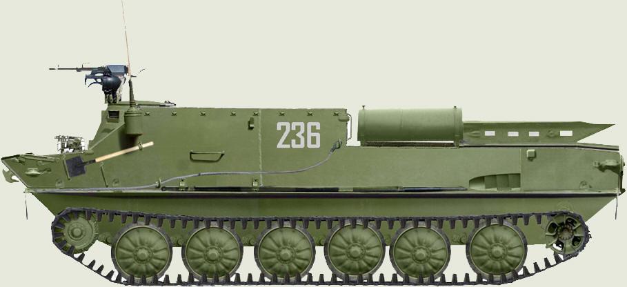 Так вот, в этот танк был влюблен командующий армией молодой республики, которой помогала в данный момент Родина слонов, водки и ушанок со звездочками. Учитывая, что часть границ с потенциальным противником проходила по широкой реке, генерал-капитан возмечтал об амфибийной механизированной дивизии, которую он видел в виде дюжины "Плавунов" и пары дюжин БТР-50П*. Маловато, конечно, для дивизии, но для тех мест и на армию потянет. К чести молодого государства, военную тайну почти соблюли, и то, что танки были плавающие, агенты супостата не просекли, а вот про БТРы знали точно. Но генерал-капитан даром что отучился три месяца в Москве в академии, уяснил, что главная основа победы, это стратегический запас, и включил в заказ военной техники аж Самоходный понтонный парк на 260 метров длинной. А потом в дело включились снабженцы и прочие складские...