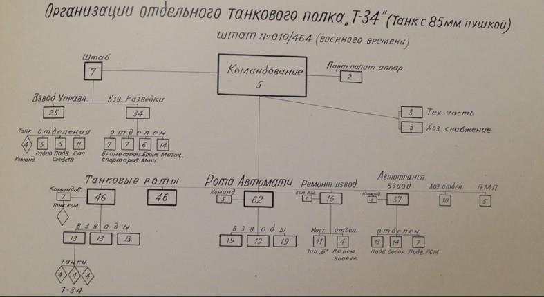 Друзья, может есть у кого схема организации танкового полка по типу той, что я в начале поста выложил? Только для танков Т-34-76. Закиньте пожалуйста в комменты или в личку. Или попробуем разобраться все вместе.