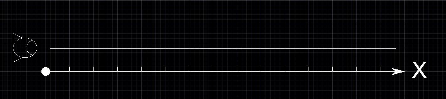 Но поскольку обычному человеку вышеприведённый абзац малопонятен, давайте начнём с чего-то попроще. Вот, например, случай №1. Элементарная координатная ось и траектория движения по ней: