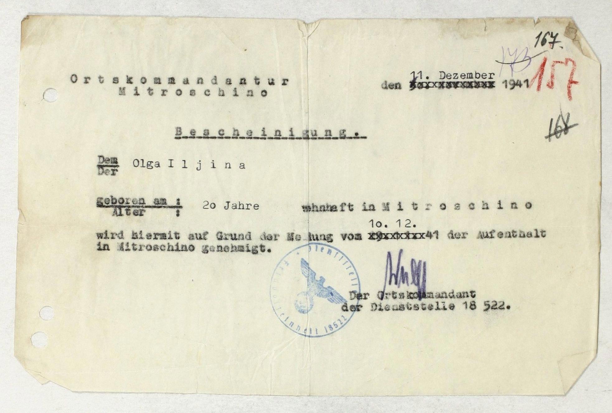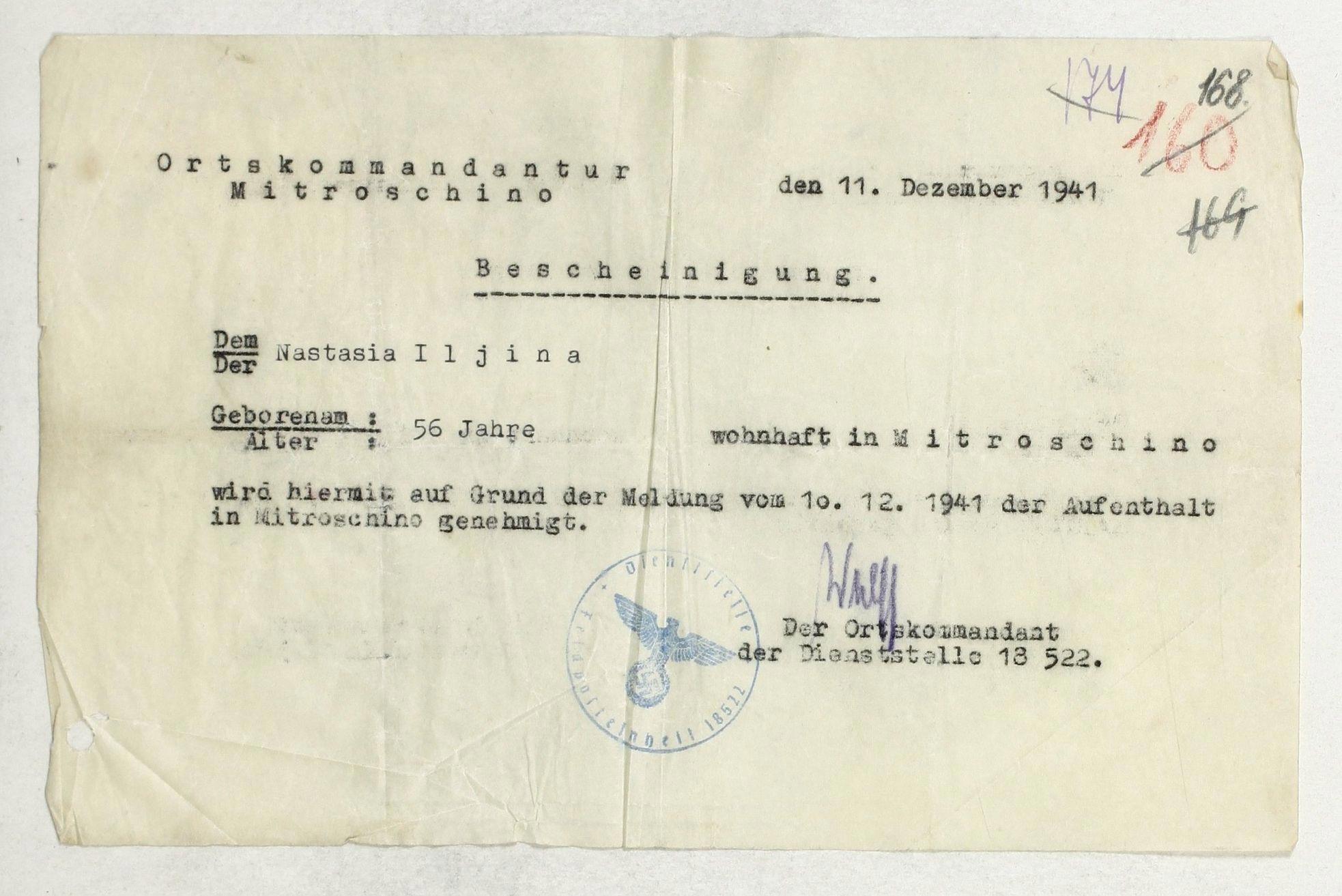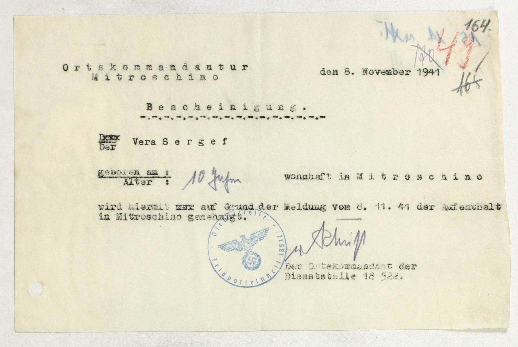город, необходимо брать пропуск у немецкого коменданта. Этот
