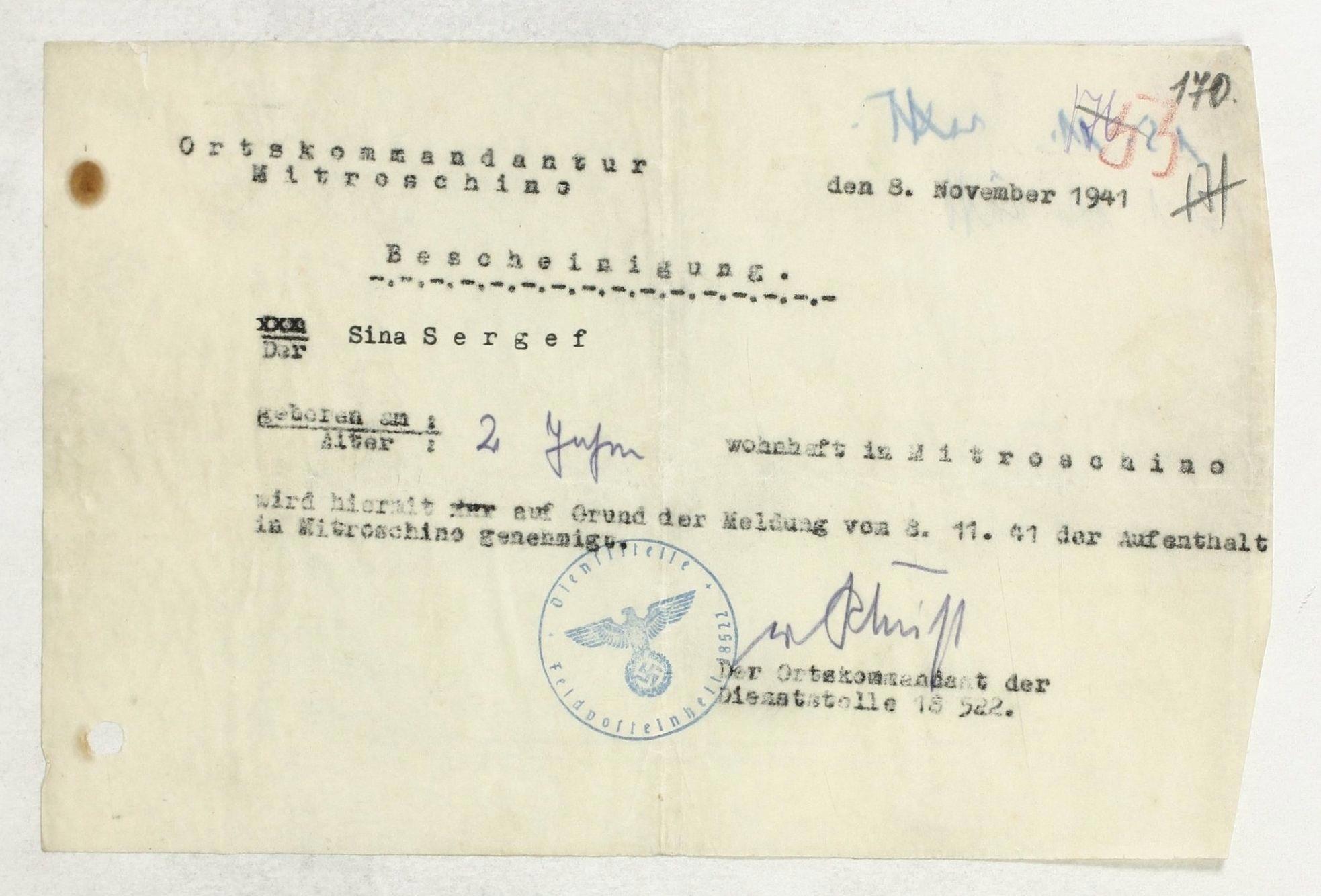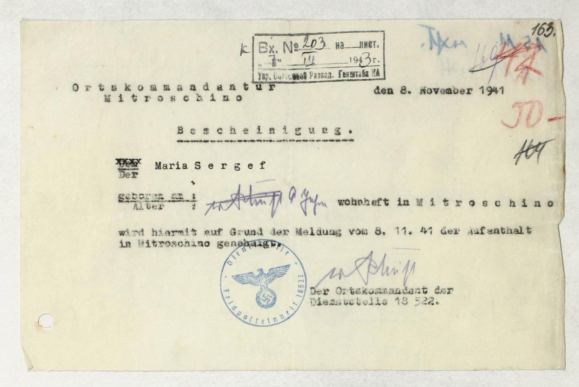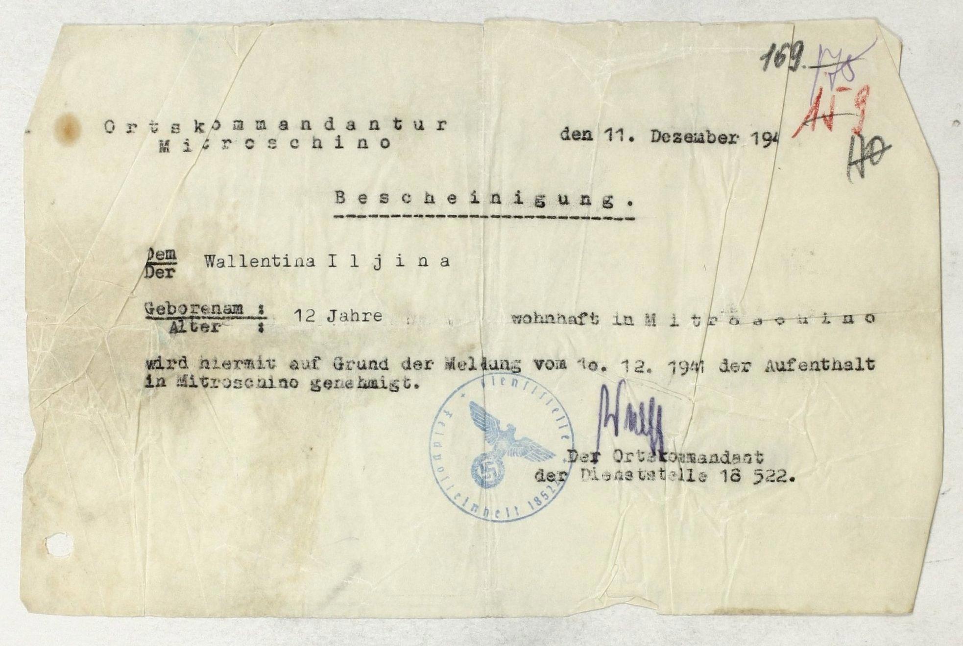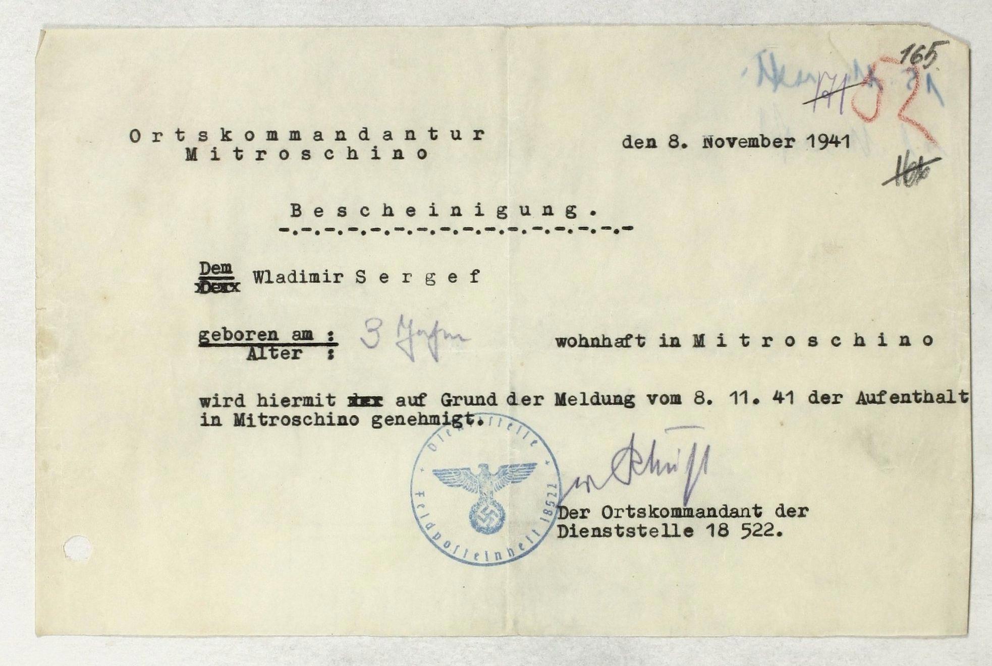 город, необходимо брать пропуск у немецкого коменданта. Этот