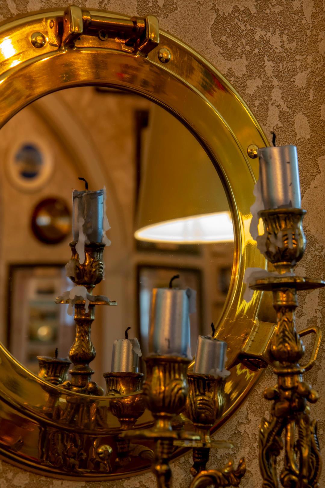 И дальше вы понимаете, что попали не просто в ресторан, нет... Вы попадаете в настоящий музей. Это та самая прекрасная изюминка, на которую делают ставку хозяева комплекса. Здесь вы не только можете хорошо отдохнуть и великолепно покушать, здесь вы увидите реальные вещи прошлого и позапрошлого века. Большая часть экспонатов была приобретена на рынках Франции и Великобритании и привезены в Алушту для оформления интерьера ресторана.