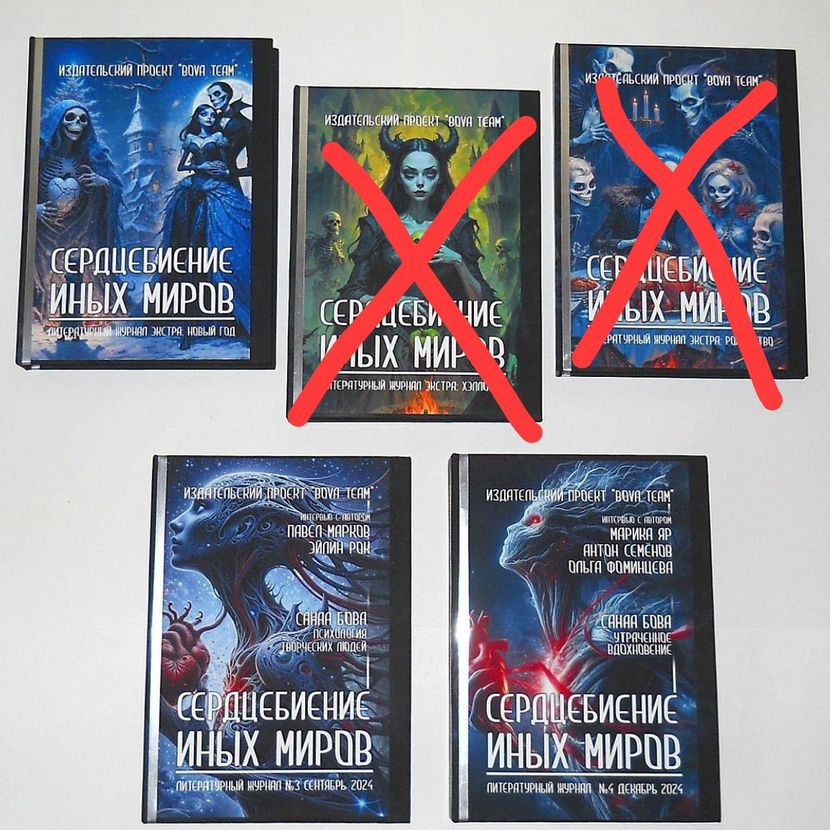 Получил экземпляры сборников (камеру разбил, на сотовом, не получилось, к сожалению, сфотографировать. Позаимствовал с позволения одного хорошего знакомого с АТ его фото из блога и зачеркнул те сборники, в которые не успел пройти).