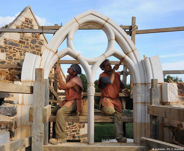 БИФОРИЙ - окно двусветное, проще сказать оконный проём из двух арок. Такая форма характерна для романской и готической архитектуры. Для примера фото со строительства замка Геделон. Французы заморочились построить его по технологиям 12 века.