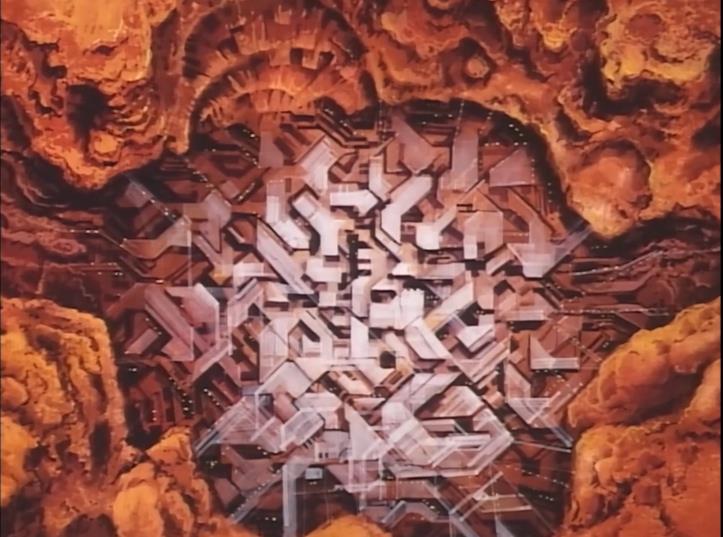 Город в отличие от многих НФ, расположен в естественно углублении, в виде множества площадок, под которыми находятся как бы "висят" жилые многоэтажки. Стильно и оригинально. Только графика как из 80х.