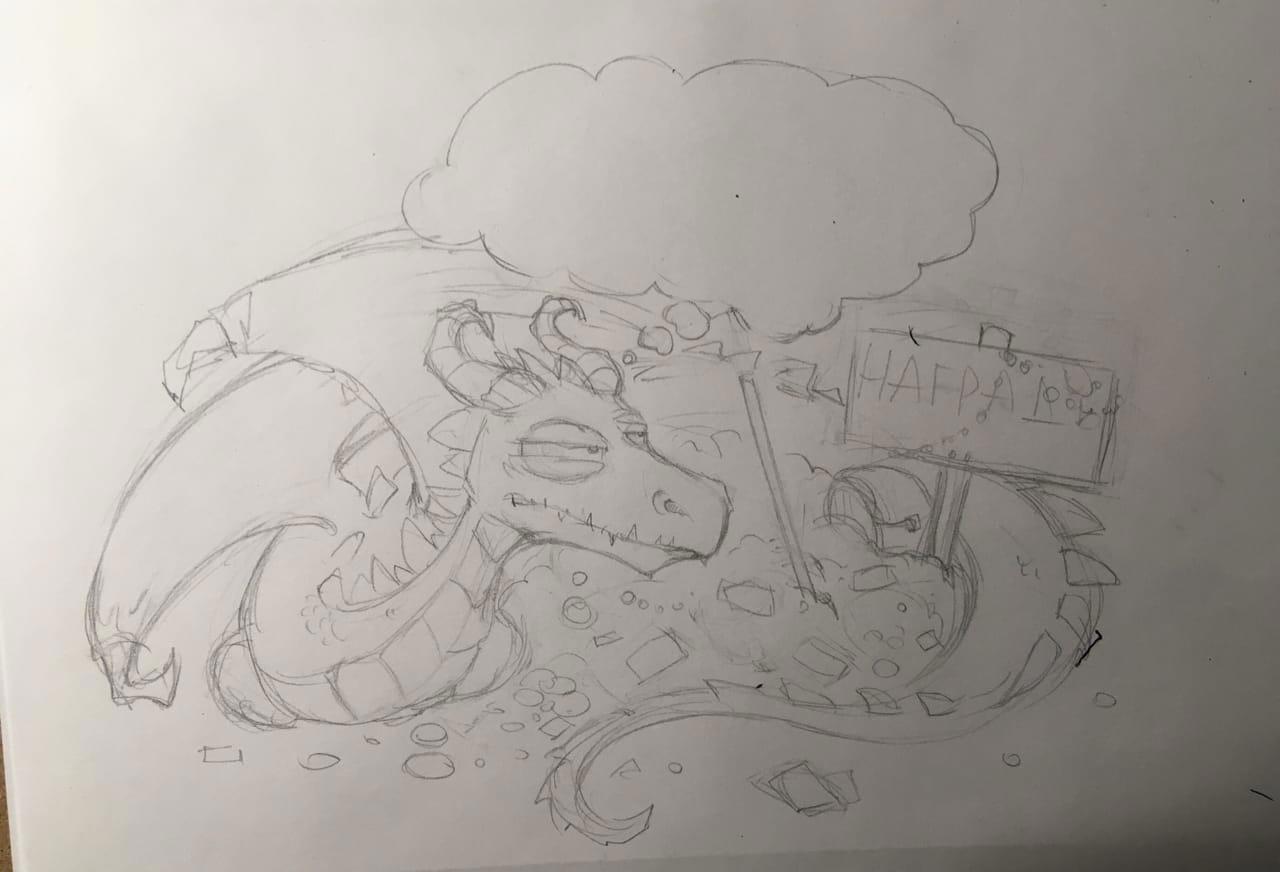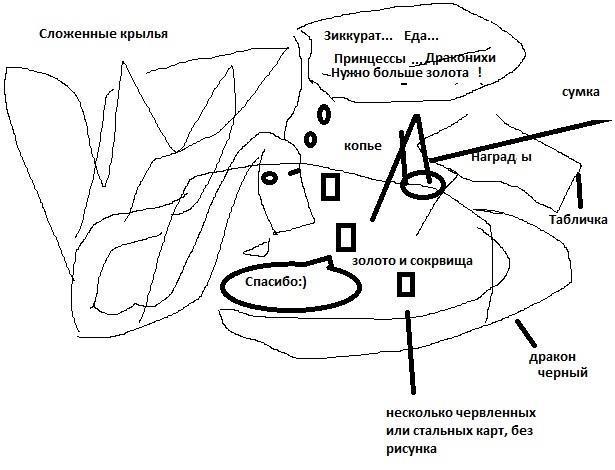 И стал ждать - очередь там длиннющая. Уже в процессе работы были внесены некоторые коррективы. Добавили кота, ворона, кристаллы и всякое такое :). А вот мысли дракона я решил сократить. Ибо шутки и отсылки штука хорошая, но тут меня могут понять неправильно).