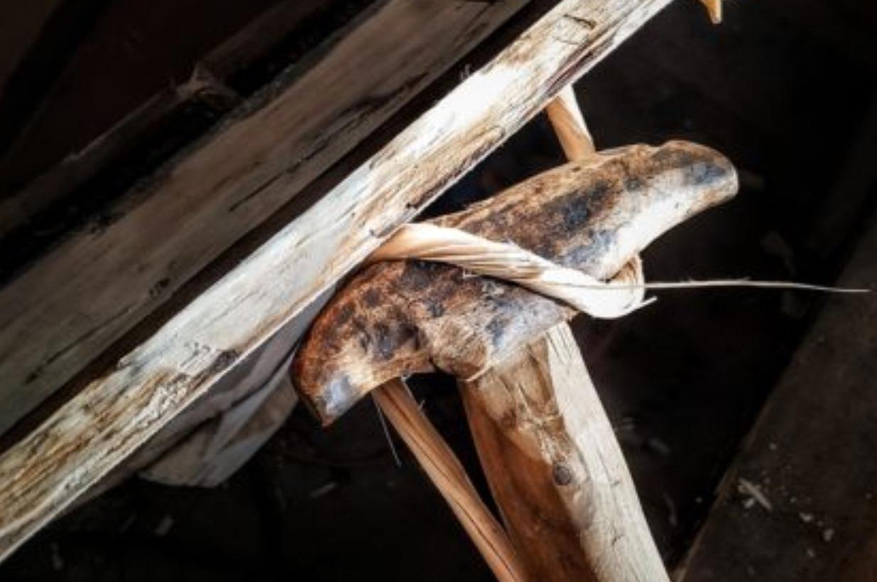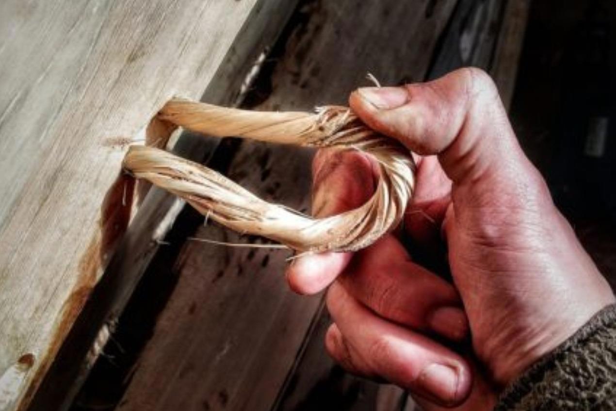 На выходе получался короткий деревянный канат — крепкий, дешевый и стойкий к воде, гнили и т. п. В досках сверлили отверстия, в них, как при шитье ткани, продевали вицу, затягивая рычагом и обстукивая деревянным молотком для лучшего обжатия. Стежки в отверстиях фиксировали ольховыми клинышками.