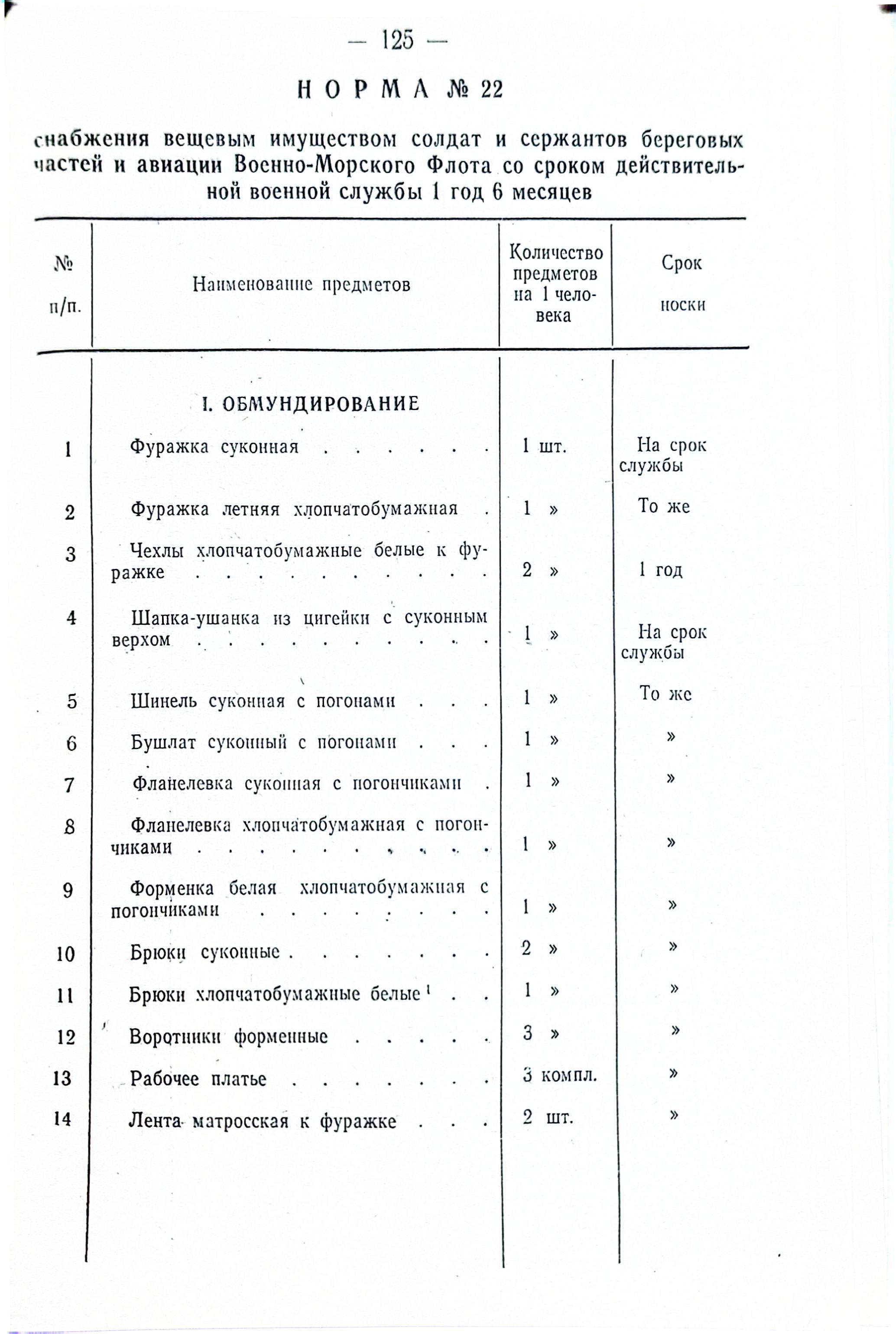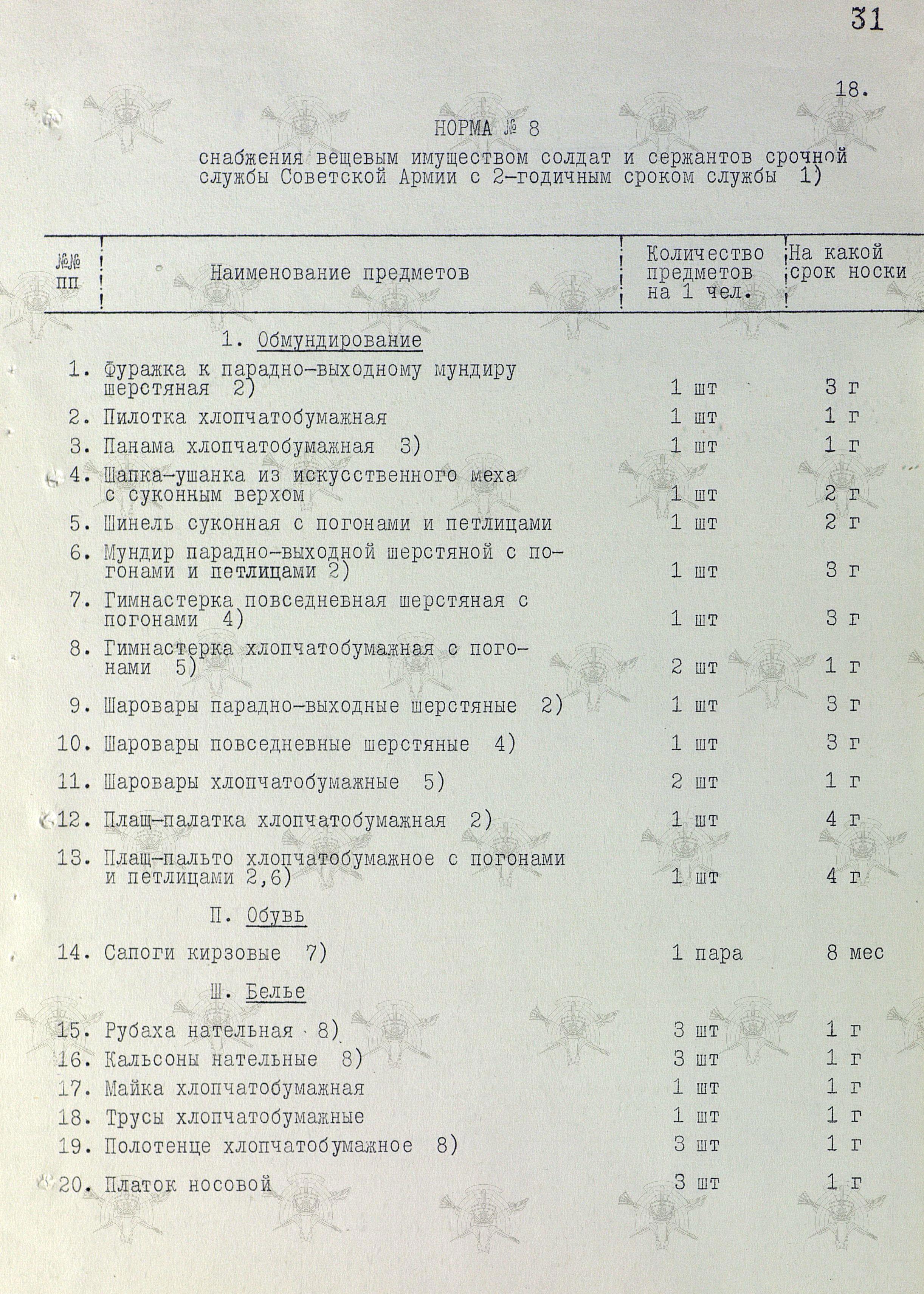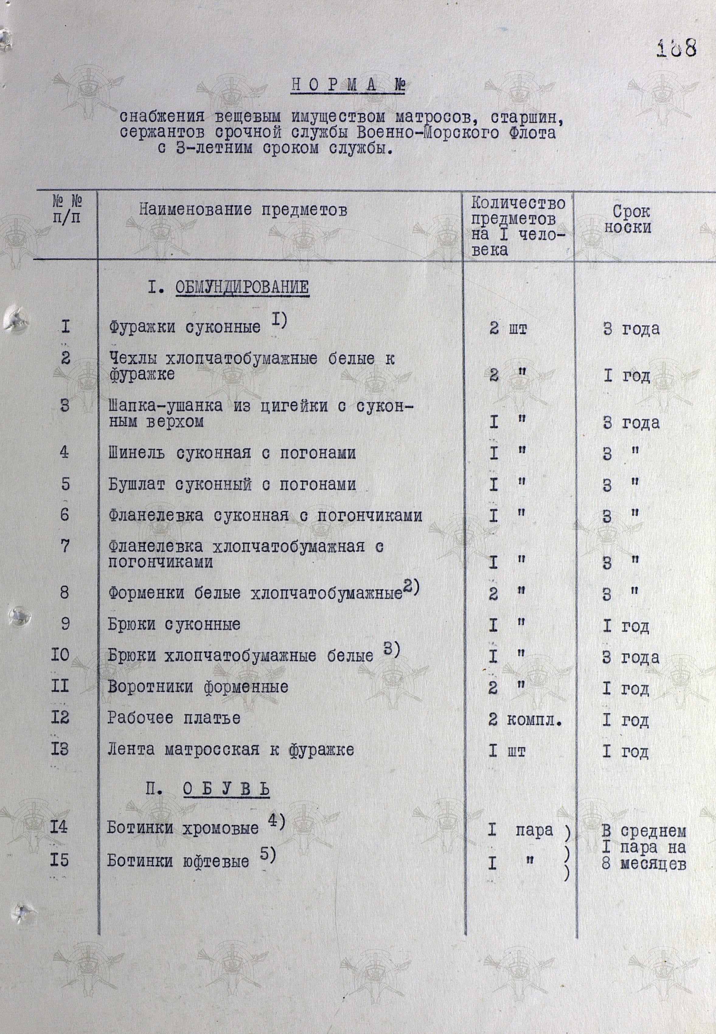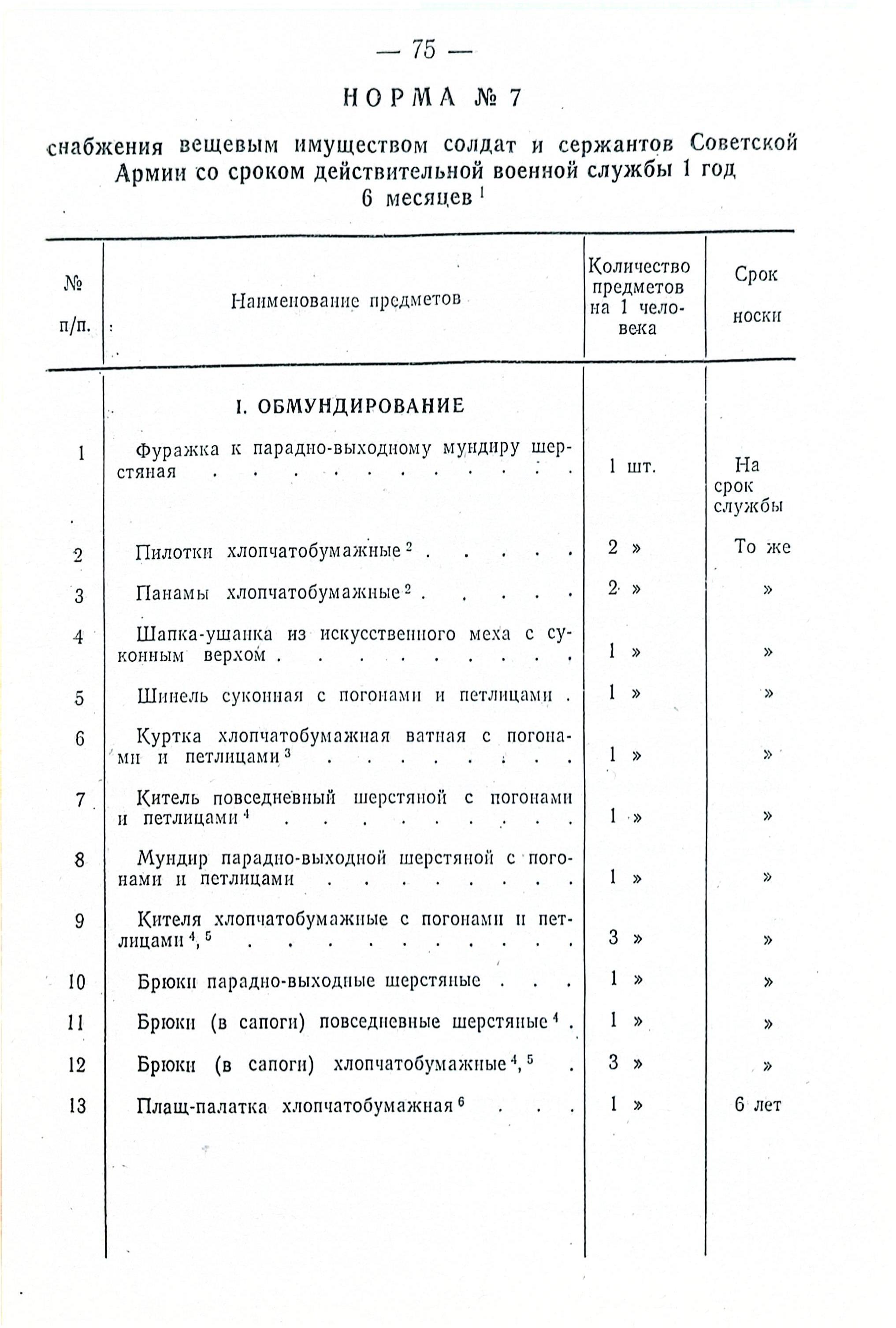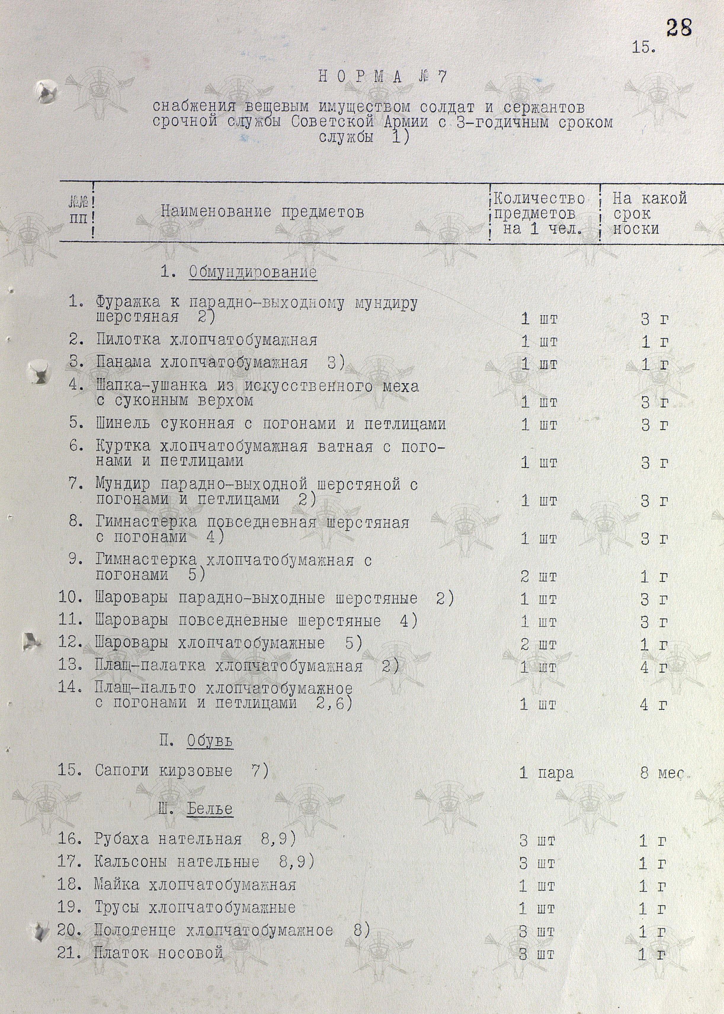 Открываем постановление Совмина СССР от 31 июля 1958 г. № П-1346с "О нормах снабжения вещевым имуществом военнослужащих Советской Армии и Военно-Морского Флота на мирное время" и удивляемся...