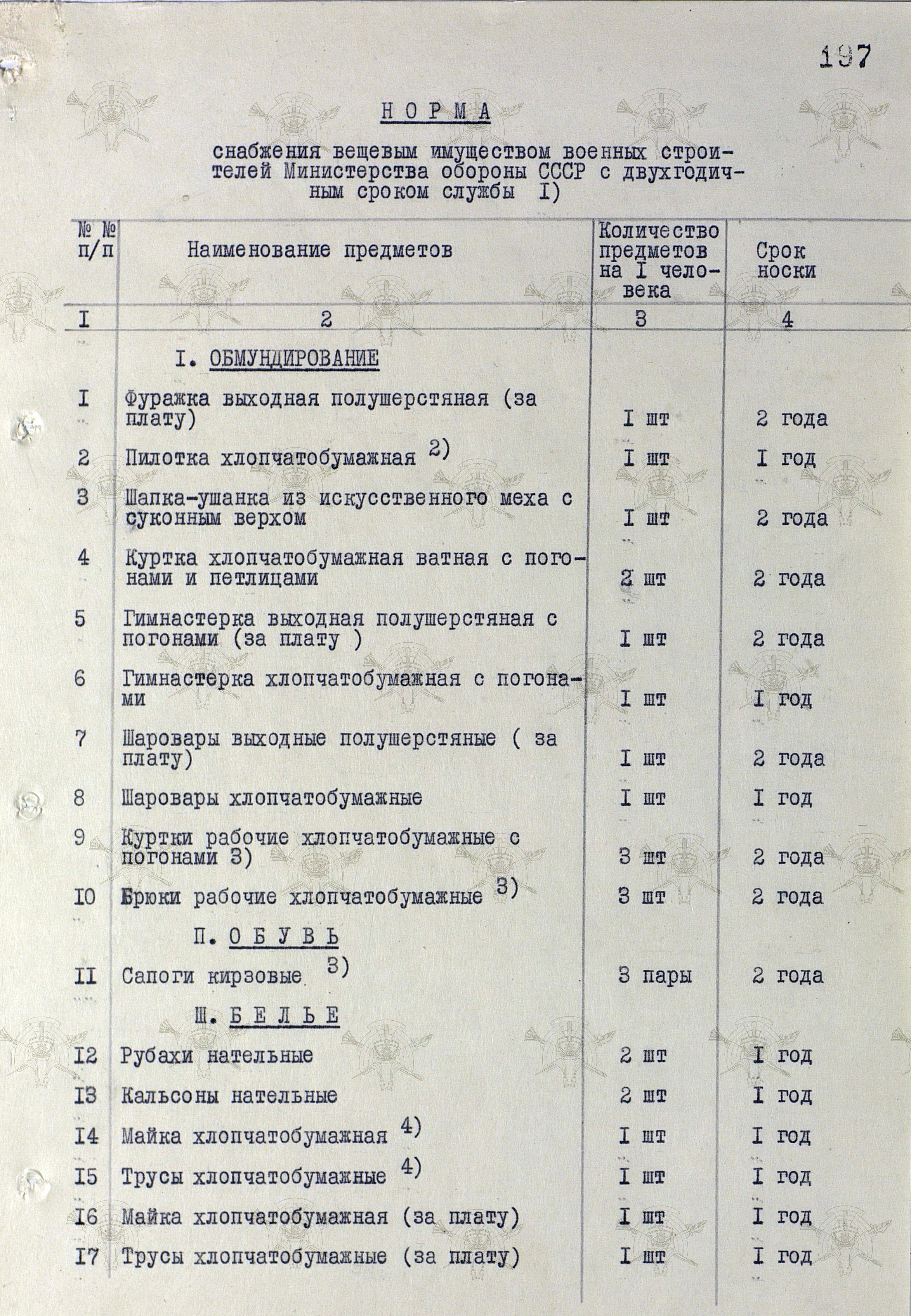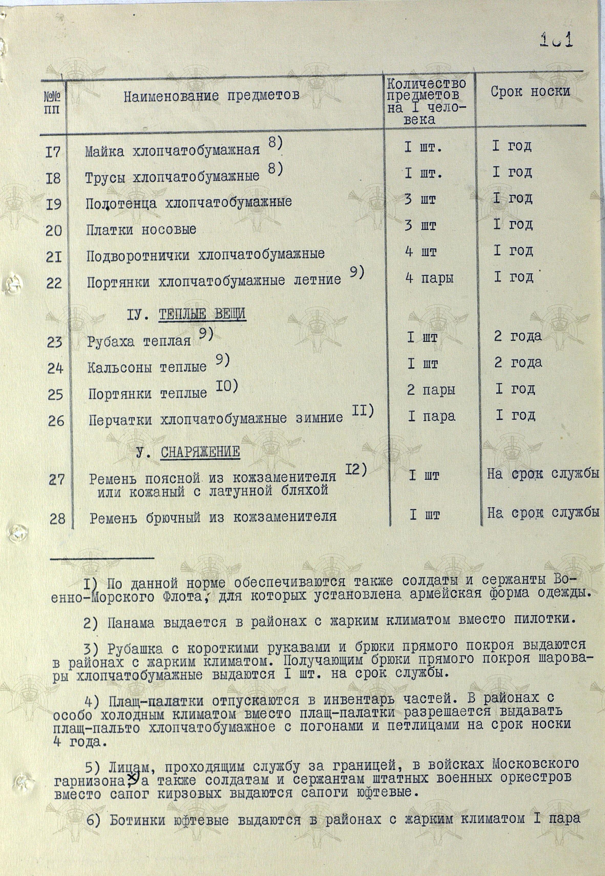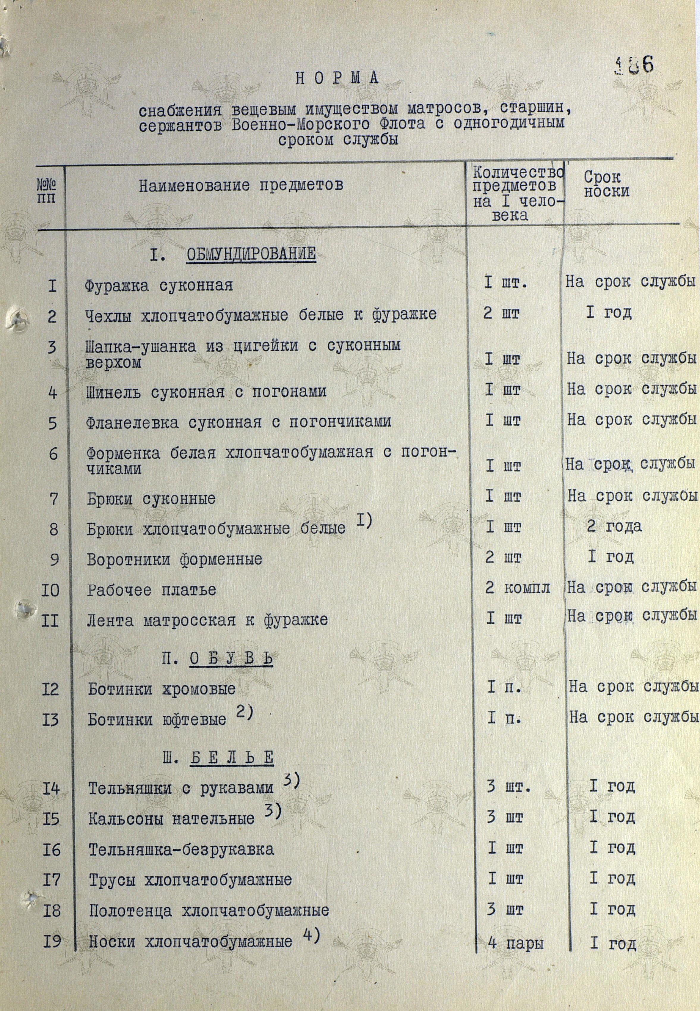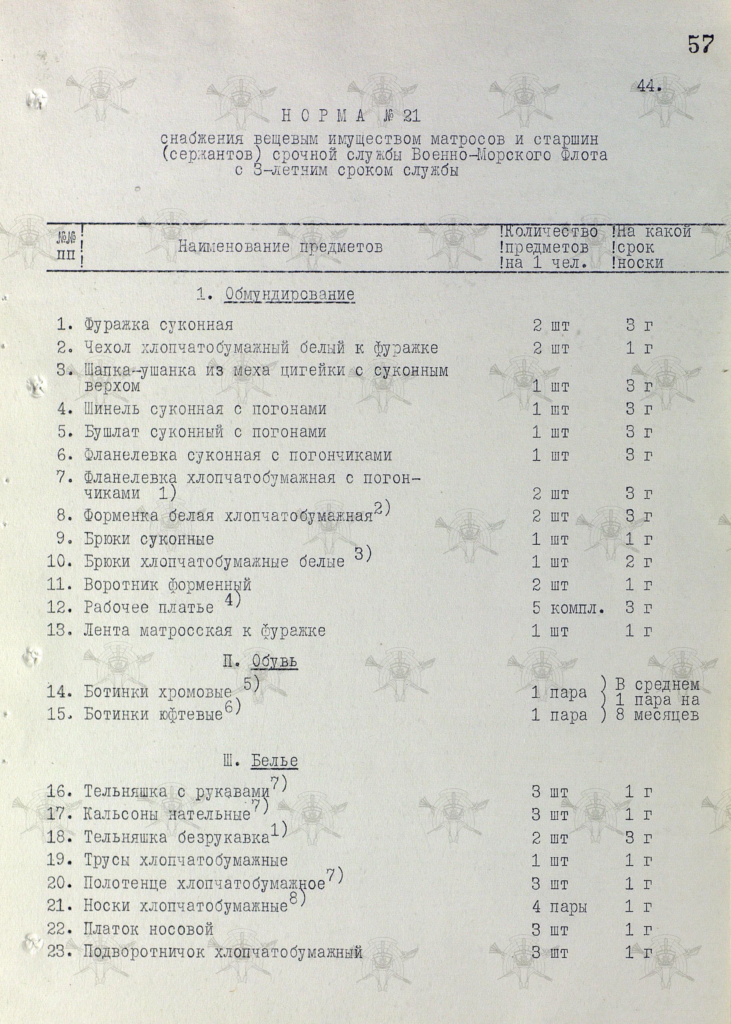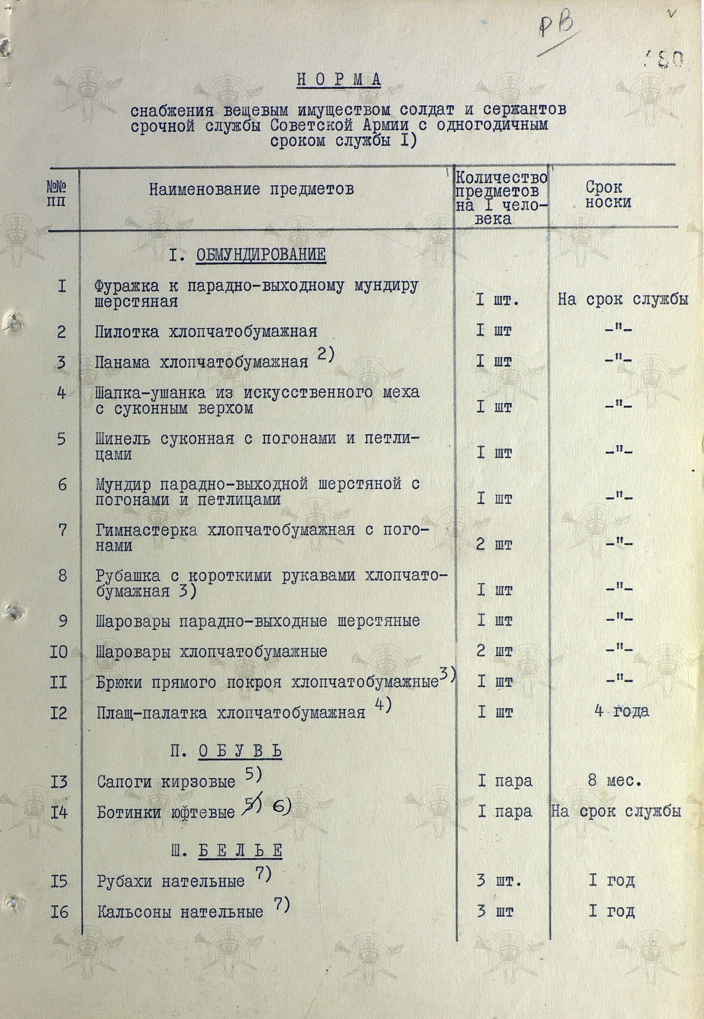 Открываем постановление Совмина СССР от 31 июля 1958 г. № П-1346с "О нормах снабжения вещевым имуществом военнослужащих Советской Армии и Военно-Морского Флота на мирное время" и удивляемся...
