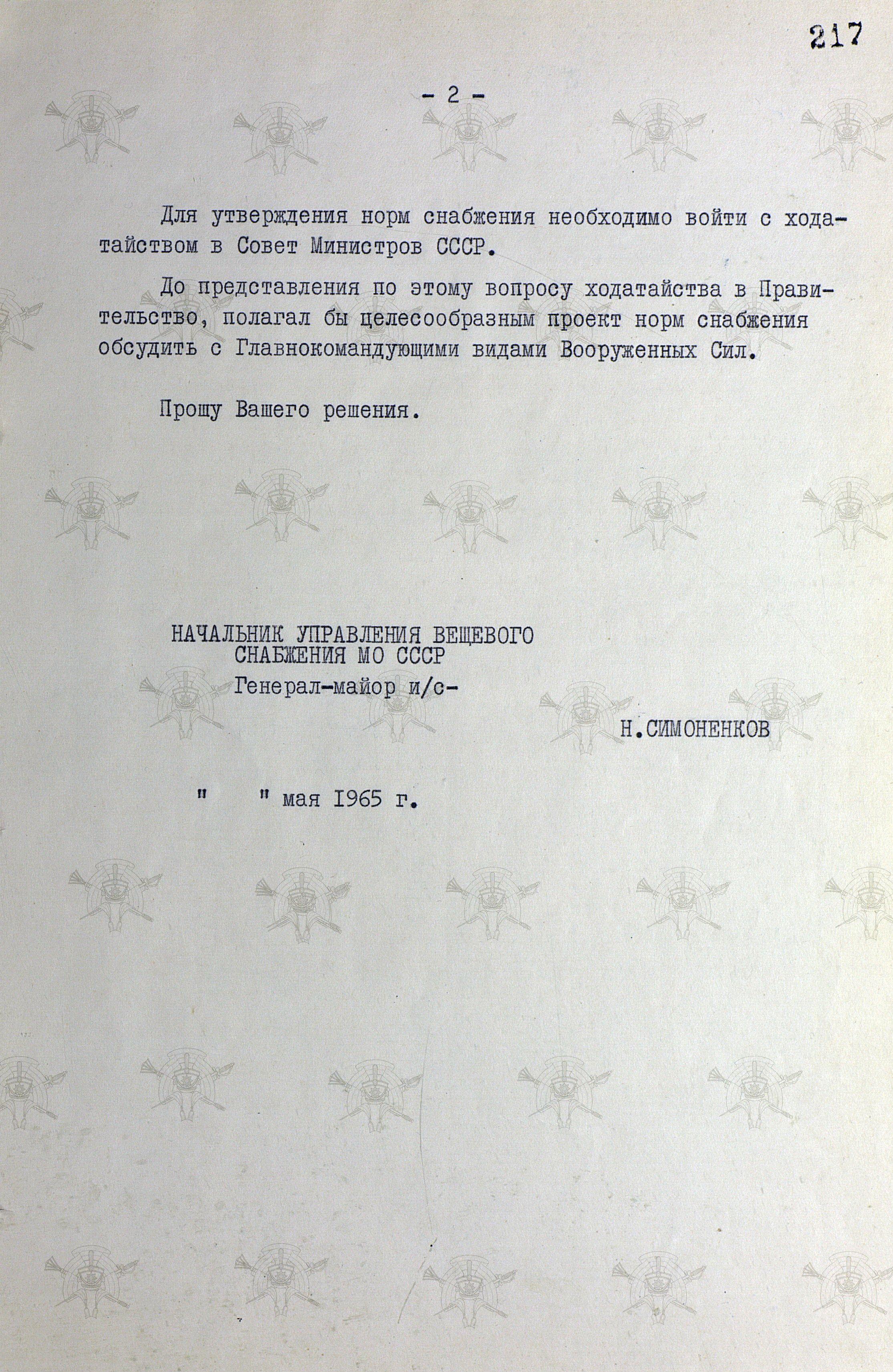 И ведь это было регламентировано и Указом Президиума Верховного Совета СССР, и приказом Министра обороны СССР. Именно о них и докладывает маршалу Советского Союза И.Х. Баграмяну начальник УВС МО СССР генерал Н. Симоненков, обосновывая необходимость принятия дополнительных норм снабжения: