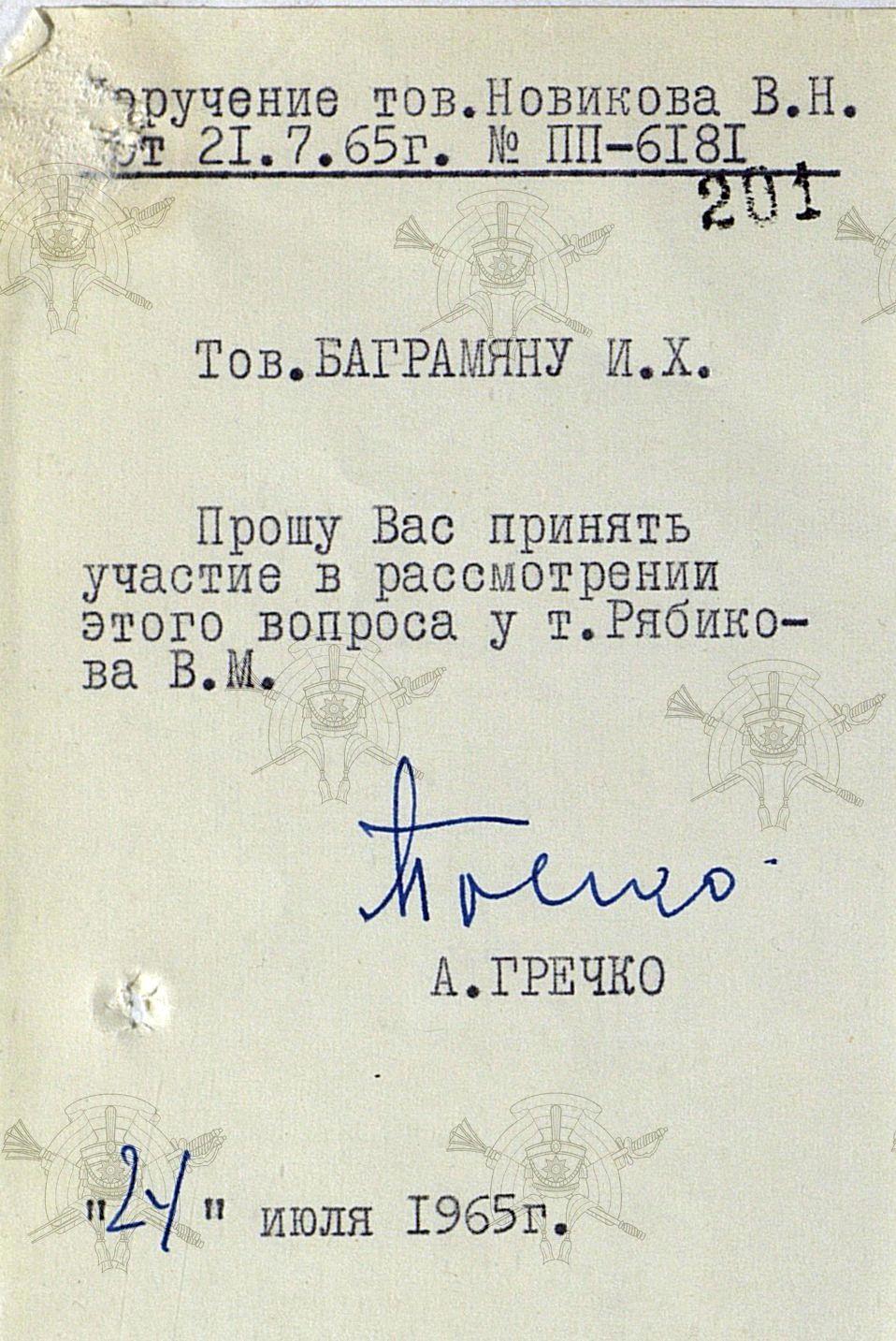 Как правило, подобный доклад - прерогатива Министра обороны. Но, в данном случае проект норм представляет Совету Министров СССР первый зам. Министра обороны СССР — главнокомандующий Объединёнными Вооружёнными силами государств — участников Варшавского договора маршал Советского Союза А.А. Гречко.