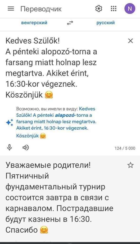 Спонсор сегодняшнего выпуска — гуглоперевод с венгерского: