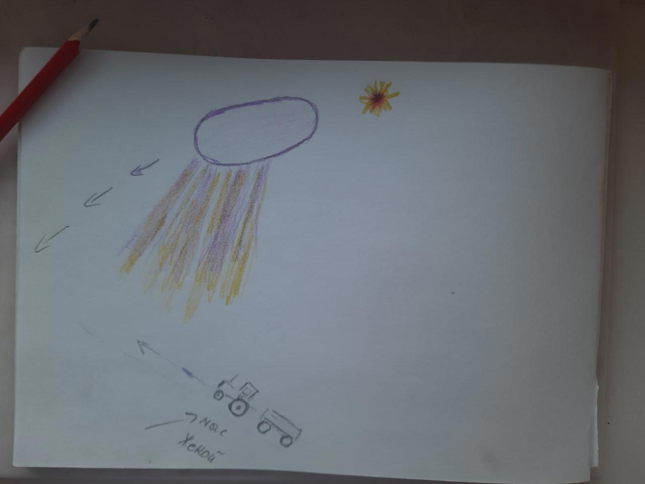 Вниз от эллипса били фиолетовые лучи, причем, не сплошным потоком, а темные сектора вперемешку со светлыми. И вся эта структура медленно и беззвучно плыла нам наперерез, держась на высоте примерно 50 метров над землей. Если продолжим движение -встреча неминуема. Помню ощущение азарта и страха.