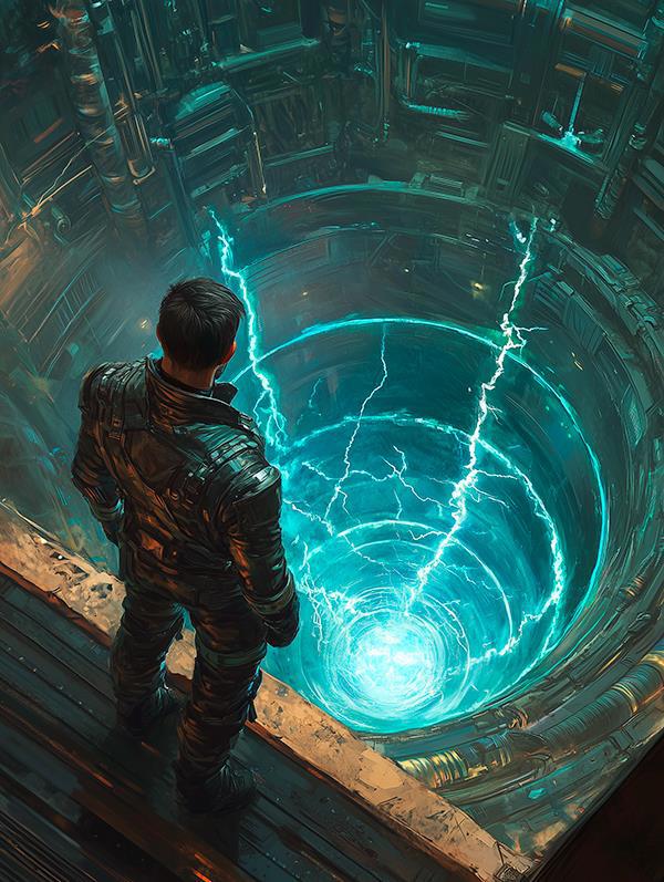 Мне даже дурно стало, когда я представил, какого он размера, если его основание внизу в недосягаемости зрения. И, скорее всего, эта шахта только видимая часть, а сам реактор — километры в поперечнике. Он должен вырабатывать столько энергии, что не только для чар хватит, но и планету двигать можно...