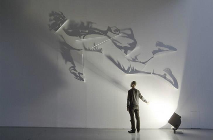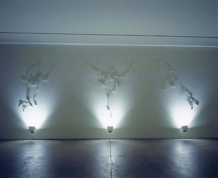 Сначала Фабрицио рассчитывает падение света: искусственного или солнечного, что значительно усложняет задачу. Далее из пластика или металла он сооружает необходимые конструкции. Их мастер располагает на стенах ‒ как внутри, так и снаружи зданий! Бывает, что без посторонней помощи и специального оборудования закрепить детали просто невозможно. Когда сооружение готово, Фабрицио направляет на него свет, и происходит чудо! Непонятное бесформенное железо начинает оживать, и мы видим удивительные силуэты людей и предметов.
