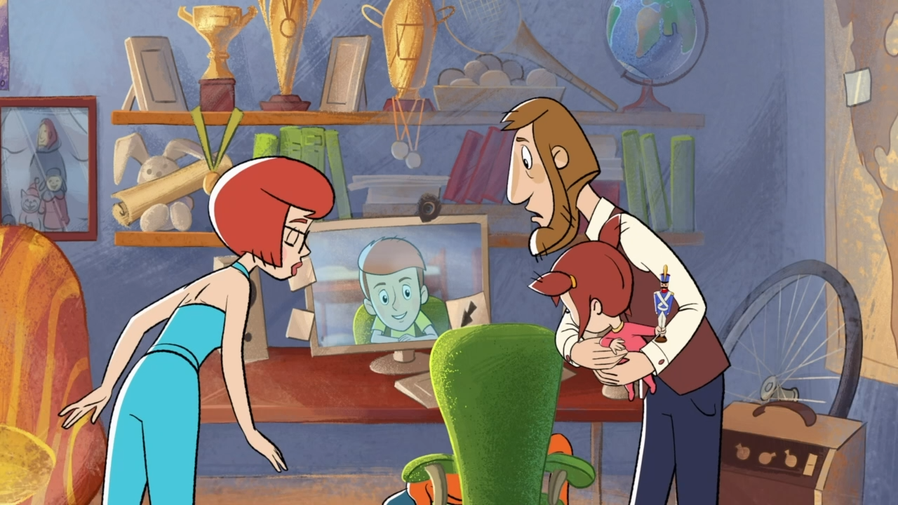 Персонаж суетится и бегает между мамой и папой, которые не реагируют на его крики и вопли, поскольку заняты маленькой непослушной Верочкой. Эх, равнодушные люди, вообще не обращают внимания на стремительно прогрессирующую деменцию сына.