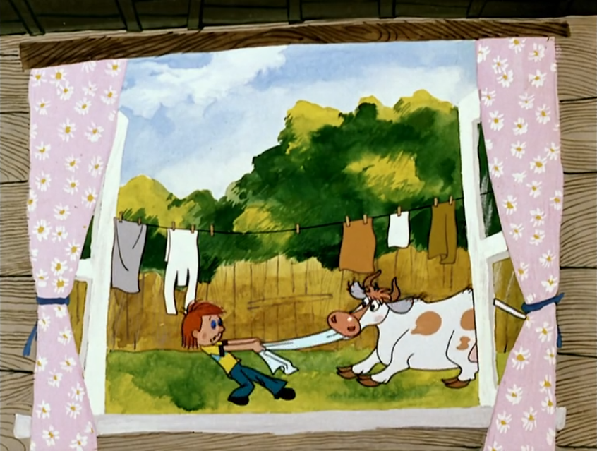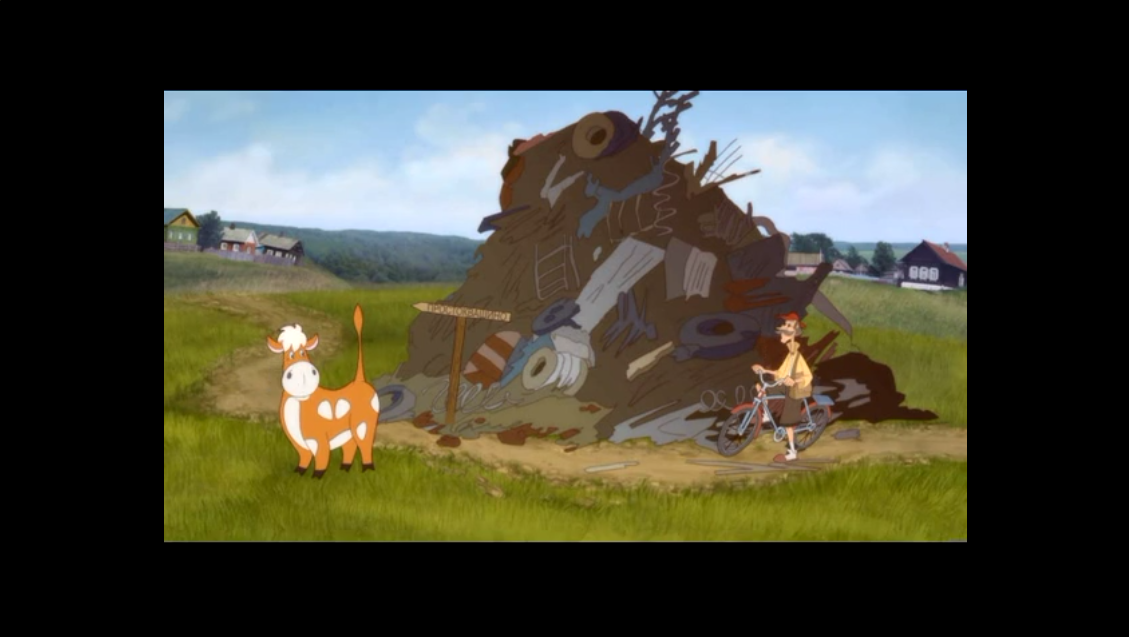 Думаю, на этом анализ мультфильма «Трое из Простоквашино» можно закончить. Переходим к первому эпизоду современного мультсериала, созданного без участия Эдуарда Успенского. Что можно сказать по этому кадру?