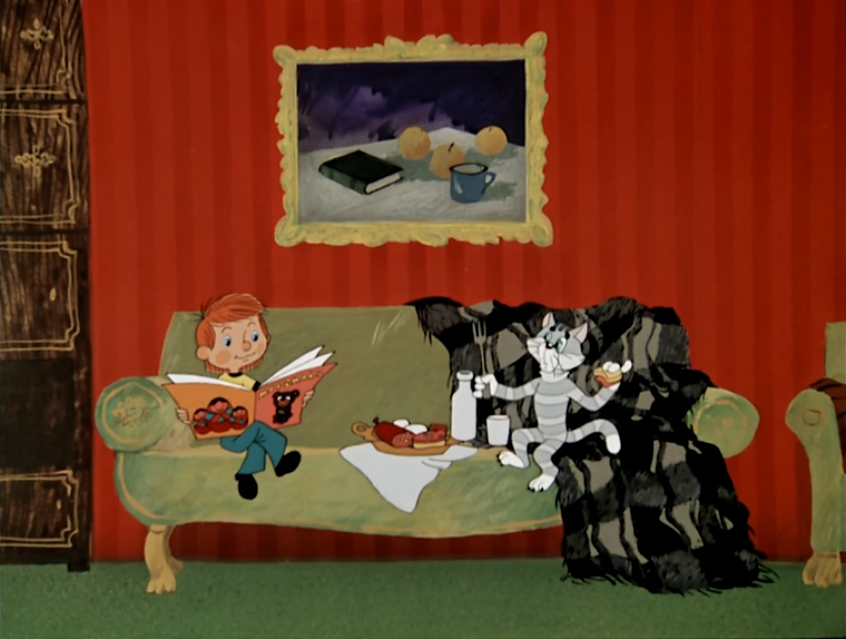 Останавливаясь на лестничной площадке, Дядя Федор вздыхает, словно украденная драконом принцесса, а потом грустно смотрит на недоеденный пончик, будто целый день пахал на заводе и вынужден уплетать по дороге домой всякую гадость. Обреченно запихивает еду в рот. Какие же горестные каникулы у здорового парня, которого ждет персональный компьютер с игрушками.