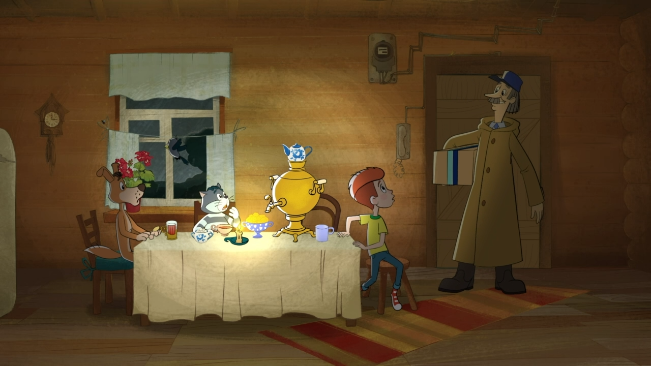 Герой болтает «ни о чем». Затем приходит почтальон Печкин и приносит посылку, отдавать которую по традиции не собирается. Да, это не отсутствие новых идей, а лишь дань оригиналу, как и бережное сохранение образов персонажей.