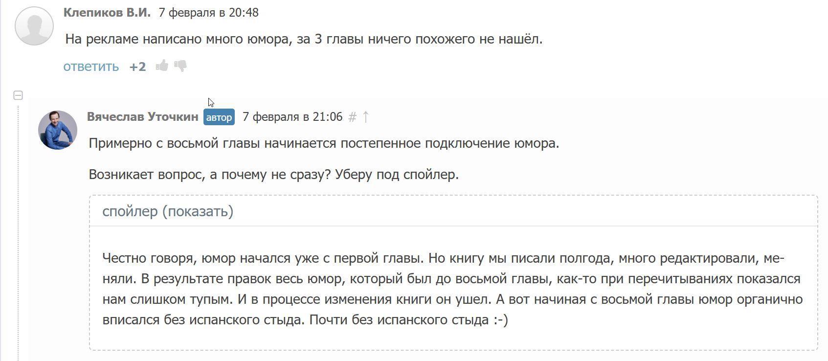 - Если юмор заявлен в книге и рекламе, то начинать его сразу в первой главе.