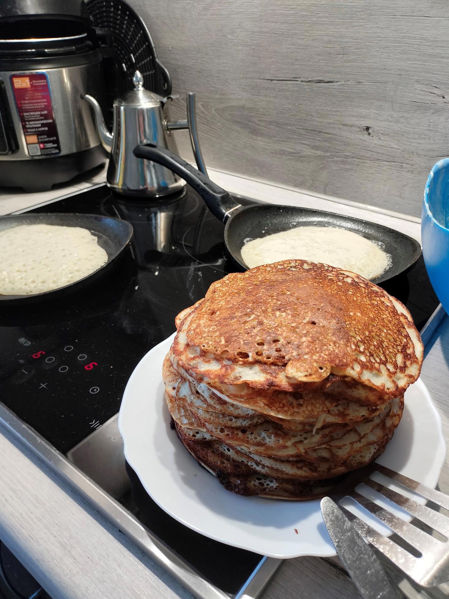 Блины пеку для домочадцев к обеду и ужину, плюс надо будет проставиться к чаепитию в садике и школе