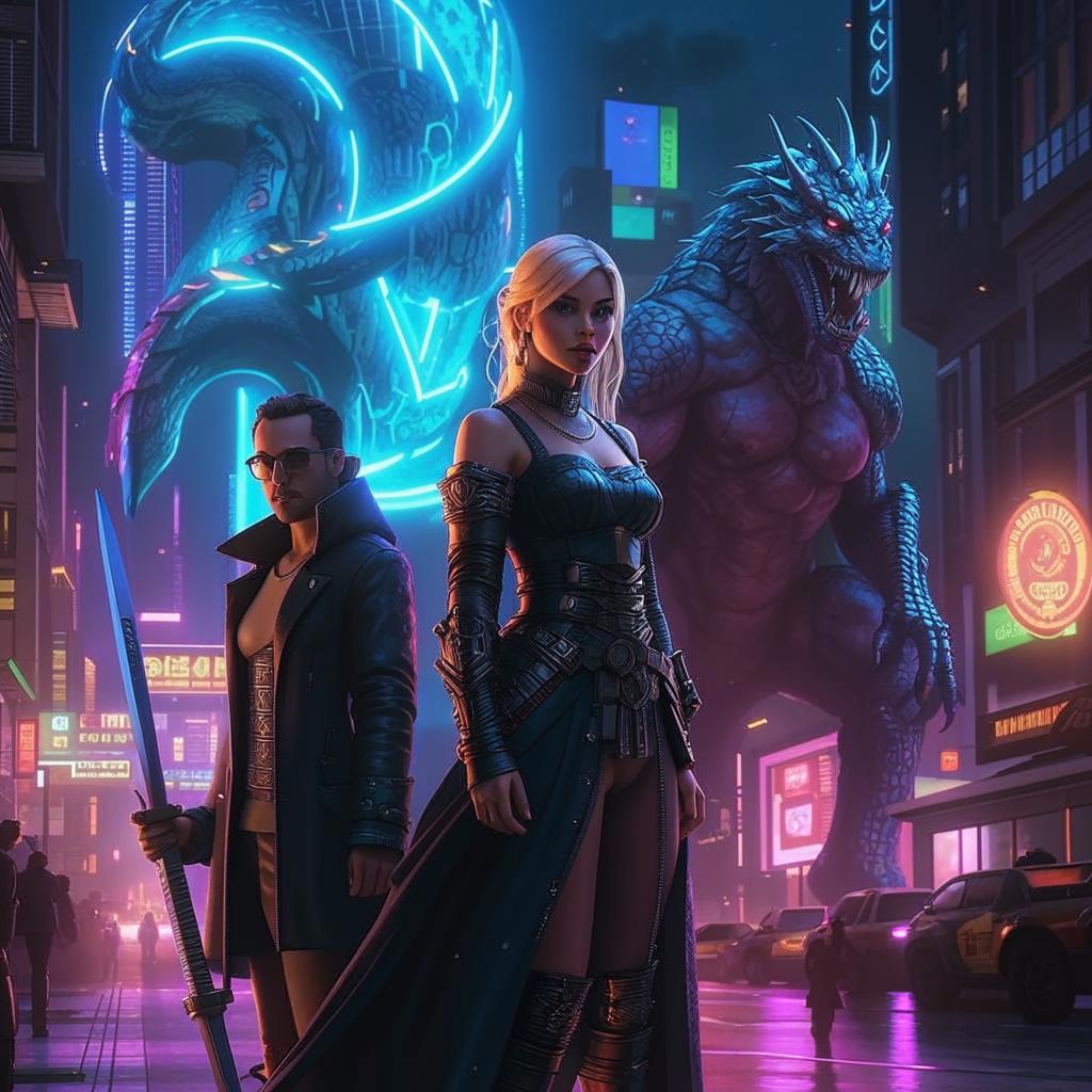 На картинке Василиса Премудрая и Змей Горыныч с каким-то непонятным штрихом в стиле киберпанк. Змея не узнать, а по Василисе хорошо видно в каких местах организма она премудрая. Но, что с нейросетки возьмешь.