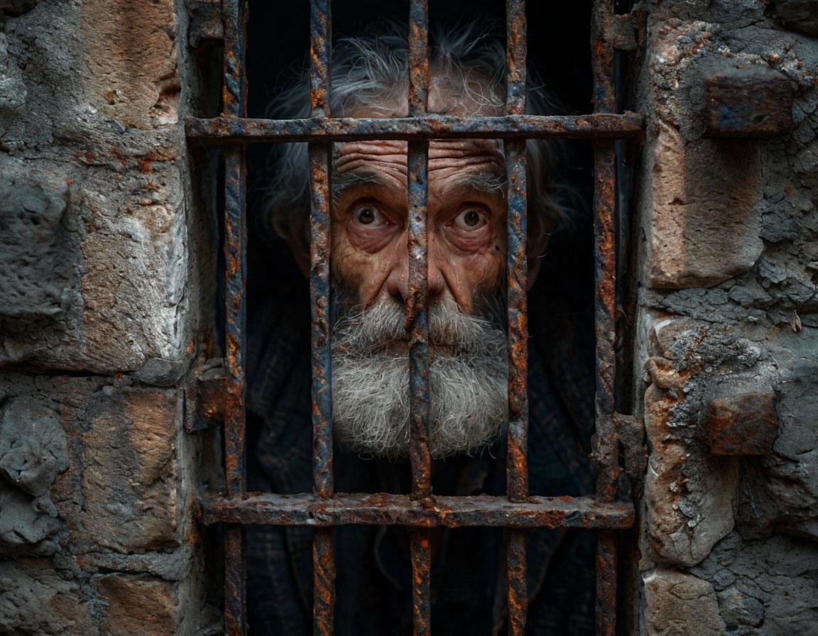 Неспешные шаркающие шаги звучат все ближе. Я напряженно вглядываюсь в источник звука, но в полумраке вижу лишь бесформенную гору тряпья. Наконец, незнакомец приближается к решетке и лунный свет падает на его изможденное, испещренное морщинами лицо. Старик стоит неподвижно, прижавшись лбом к ржавым прутьям и смотрит на меня, не отрываясь и даже не моргая. Я слышу его свистящее дыхание. Становится жутко.