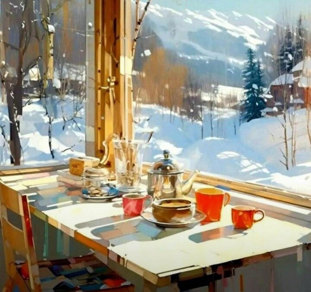 Её картины очень узнаваемы по яркому солнцу, лучи которого заливают стол, стоящий у окна, они наполнены радостью, ощущением ожидания прекрасных событий и способны дарить отличное настроение целый день. Даже зимние виды из окна дарят только тепло и радость зрителю.