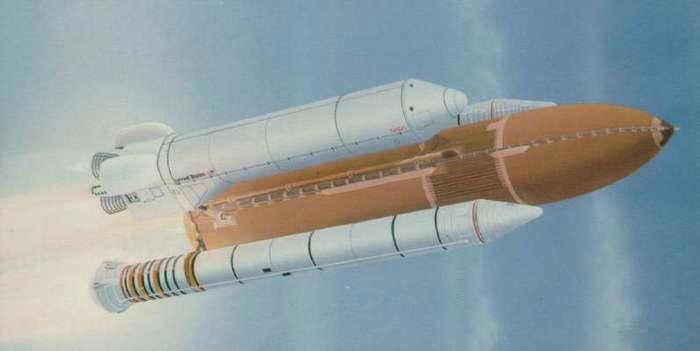 Средств на создание такой сложной системы в бюджете NASA на НИОКР не нашлось, поэтому вместо первой ступени приделали два одноразовых твердотопливных ускорителя. Сразу после этого стоимость подпрыгнула.