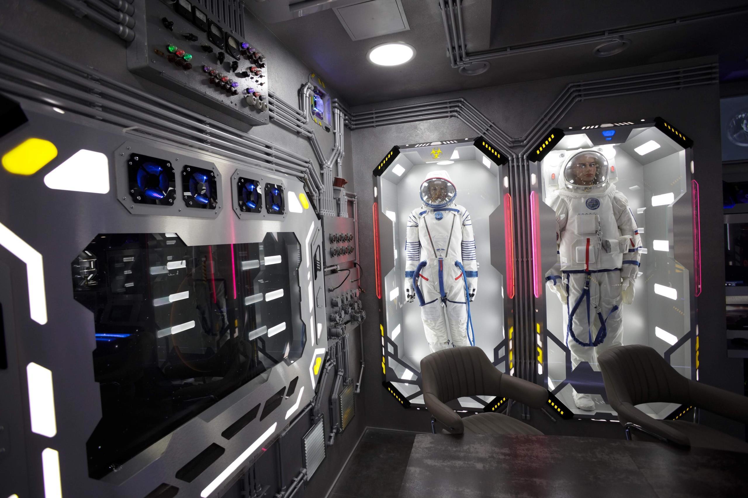Кстати, комбинезоны экипажа, как и скафандры в боксах - реально приобретены у Роскосмоса.
