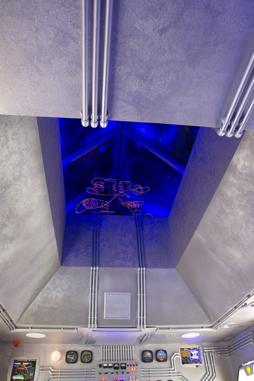 В потолке есть ещё один смотровой иллюминатор. Оформлен в виде очередной пирамиды, но в нём, как и положено - космос.
