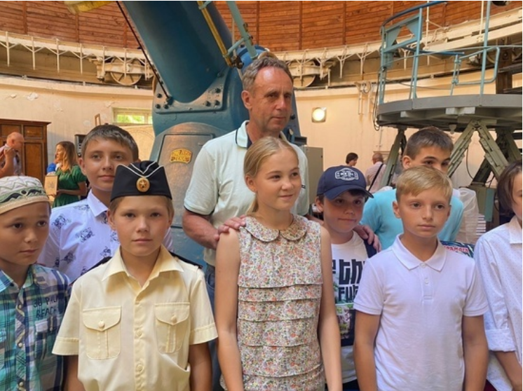 Сергей Залётин с победителями конкурса в Крымской обсерватории пос. Научный. Фото Сергея Малышева.