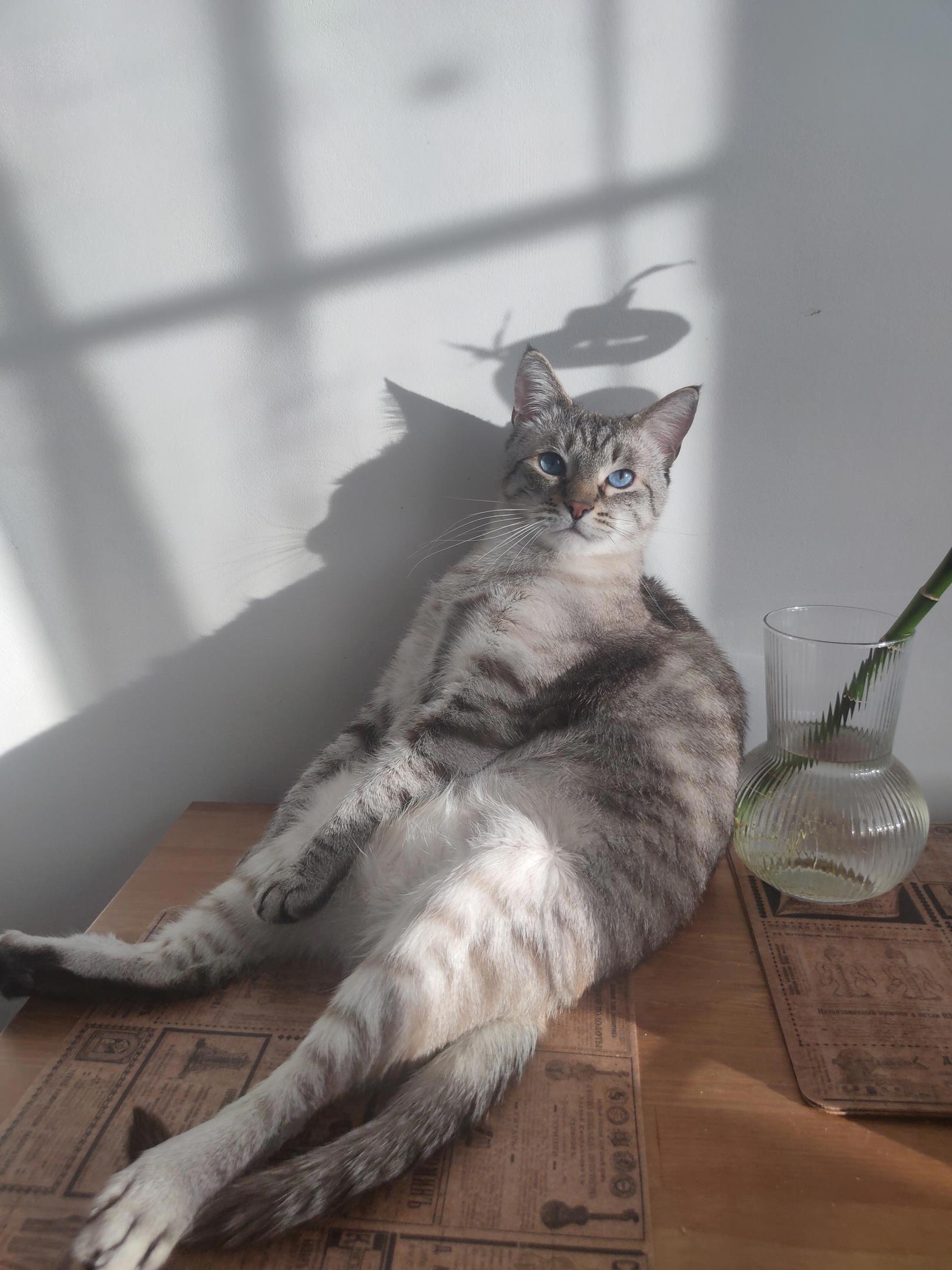 Персик принял Тихона как родного. Я читала, что тайские коты хорошие отцы, заботятся о котятах на равне с кошкой. Так и вышло. Персик рано стал папой - в свои десять месяцев, но воспитал отличного приемного сына. Я ни разу не ругала Тихона, за меня это делал Персик=)