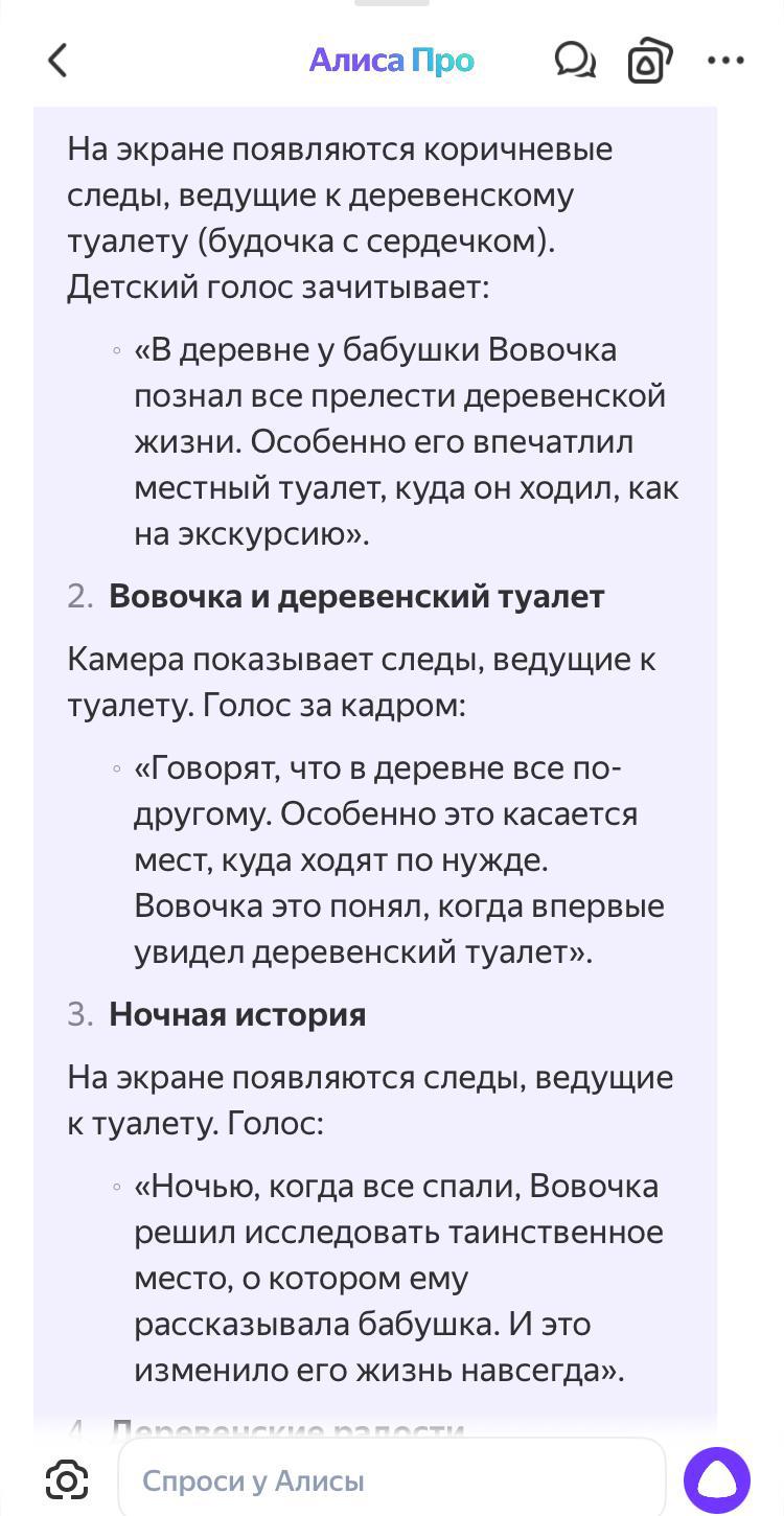 тихий,замирающий голос на заднем плане : -Марь Ванна, Вова у бабушки в гостях, в деревне был...